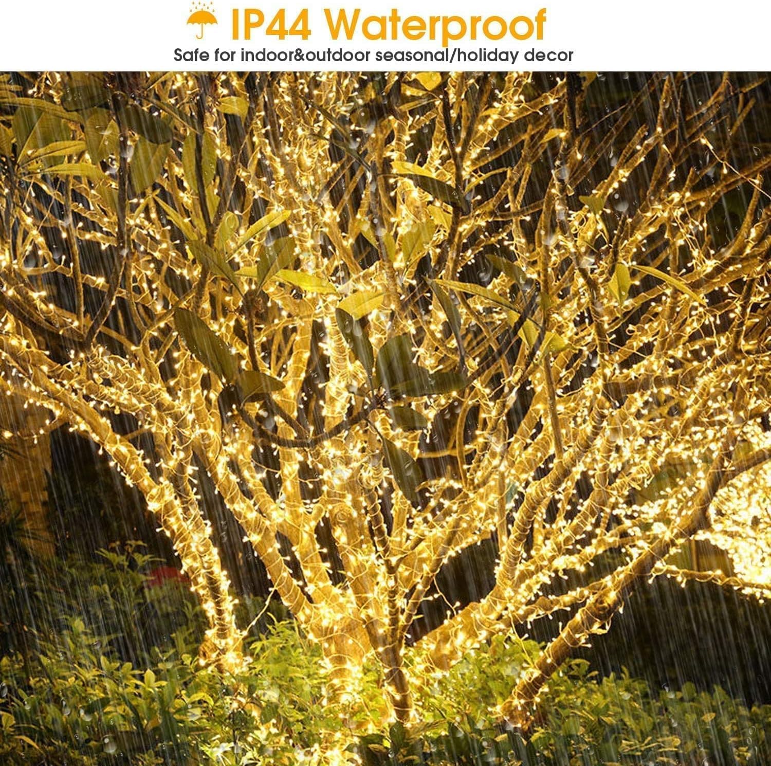 ["【Energy Efficient】: Length: 164 feet. Number of LEDs: 2000 warm white LEDs. The energy consumption is only 0.06 watt thanks to the use of highly innovative LEDs, up to 90% less compared to equivalent incandescent bulb decorations. This warm white outdoor light chain is very suitable for decorating large occasions. You can adjust your arrangements at any time. Your best choice for Christmas decoration.","【8 Different Modes】: Combination, waveform, sequentially, slow brightening, flashing, slow fading, twinkling, and glowing. Elegear Christmas outdoor light chain brings you a good party atmosphere. You just need to press the button to switch between modes.","【Longer Lifespan】: Innovative LEDs (Up to 50,000 hours working time) with IP44 waterproof, so Elegear warm white Christmas lighting can be used both indoors and outdoors. Not only during Christmas time, but also at parties and events of all kinds, this is a beautiful decoration that sets the mood for family and friends.","【Flexible and Durable】 164 feet outdoor LED light chain with 2000 individual LEDs could illuminate the dark corner and create a warm atmosphere indoors. In addition, the extension cable is 9.8 feet long and is enough to connect it to another outlet. There are also 50 cable ties and a plastic plate with which you can hold the Christmas lighting over long distances.","【Perfect Christmas Decoration】 Simple and great decoration for Christmas parties, weddings, Thanksgiving, garden, indoor, and outdoor areas with these Christmas tree light chain. Widely used to decorate Christmas tree. Used by both professionals and less experienced users, this warm white Christmas lighting indoors and outdoors with high lamp density creates an exceptional light effect on interior and exterior walls, in hotels, and large halls."]