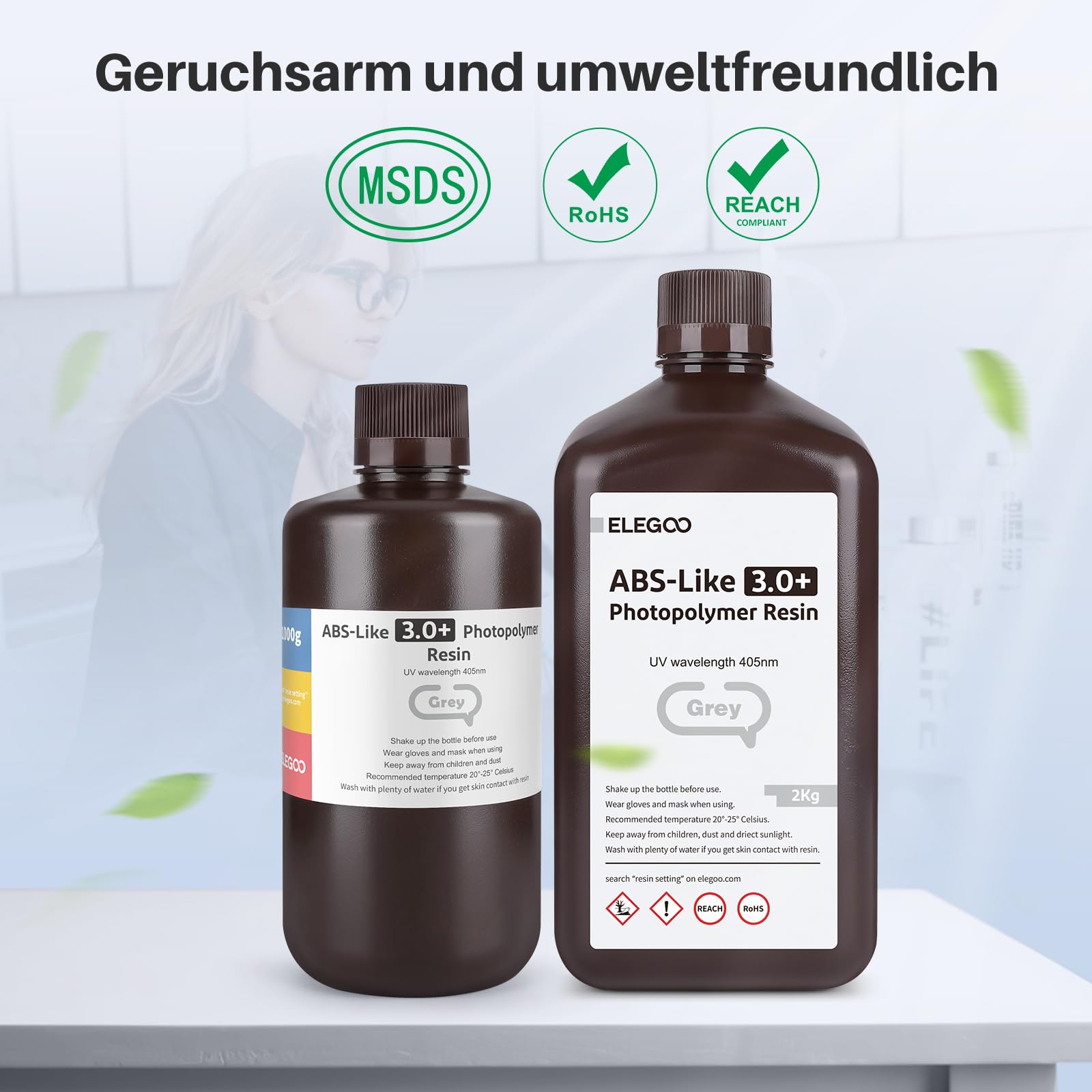 ELEGOO ABS-Like Resin 3.0 Plus, 3D printer resin 405nm rapid UV-curing photopolymer resin, high precision for LCD 3D printers translucent 1kg