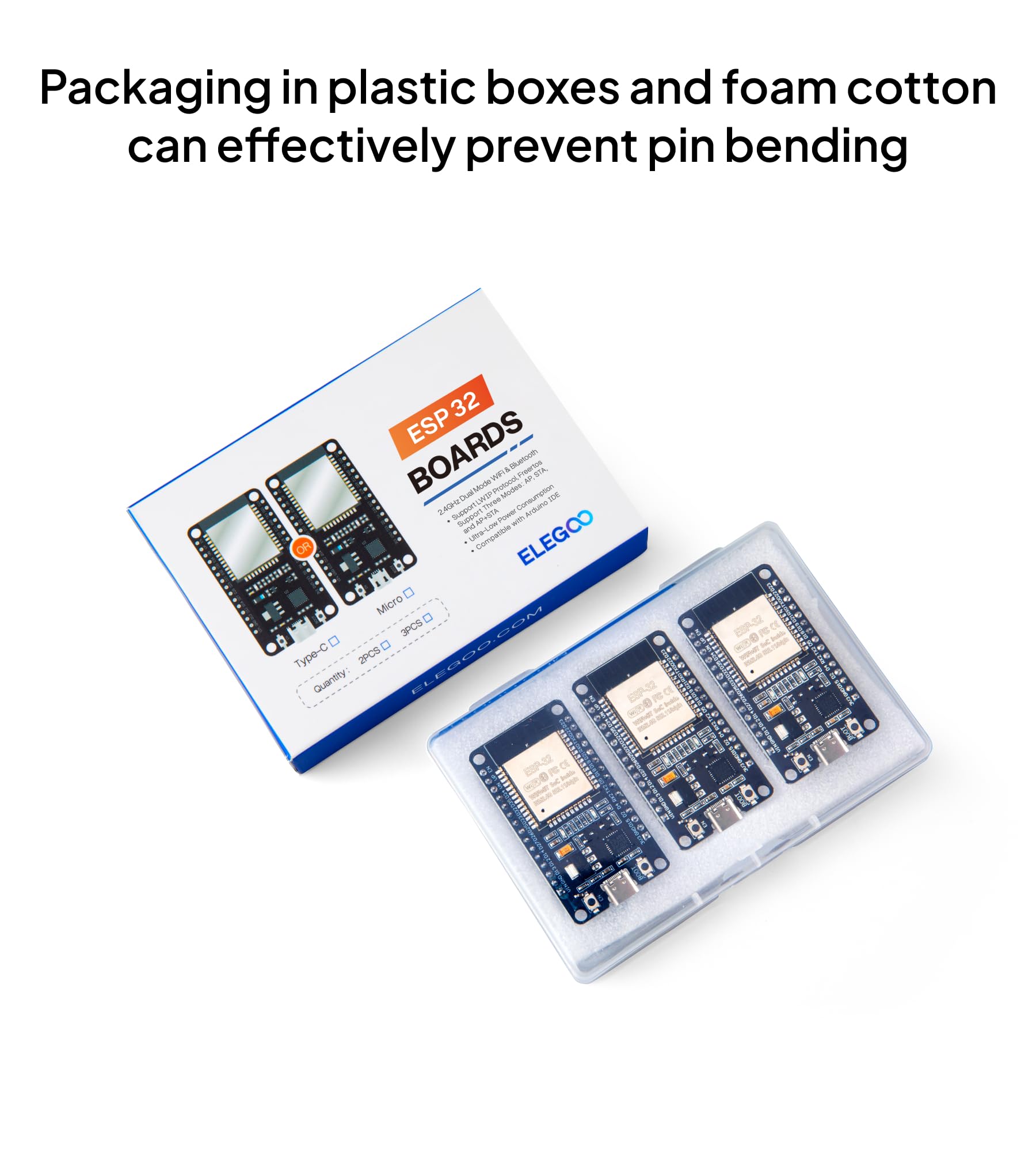 ELEGOO ESP32 Development Board USB-C, 2.4GHz Dual Mode WiFi+Bluetooth Dual Core Microcontroller for Arduino IDE, Supports AP/STA/AP+STA, CP2102 Chip, 3 Pieces