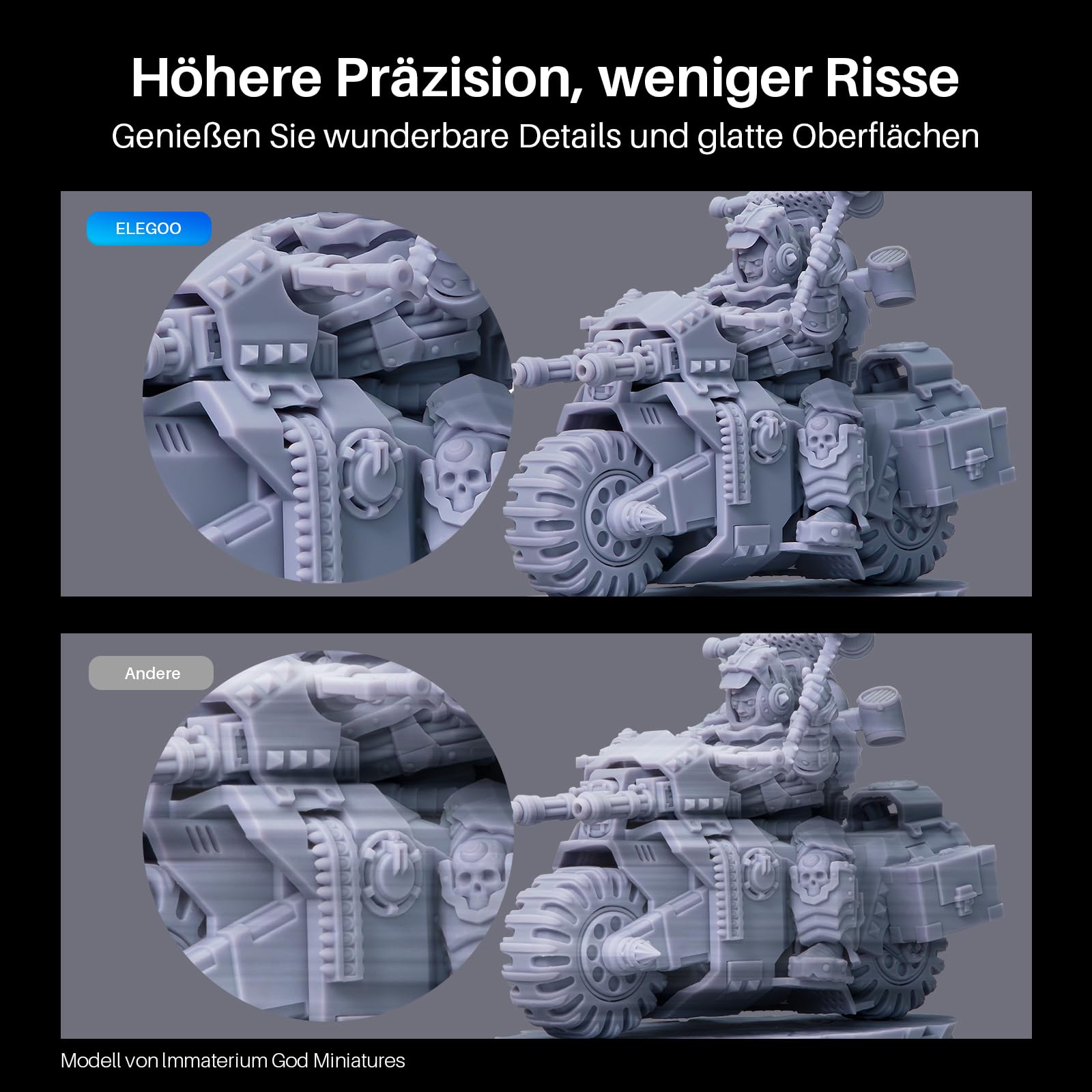 Superior detailing performance: The ELEGOO Water Washable Resin 2.0 optimizes the formula, allowing printed models to achieve more detailed details and silky smooth surfaces. The three-dimensional molding effect and success rate of Water Washable Resin 2.0 are superior.