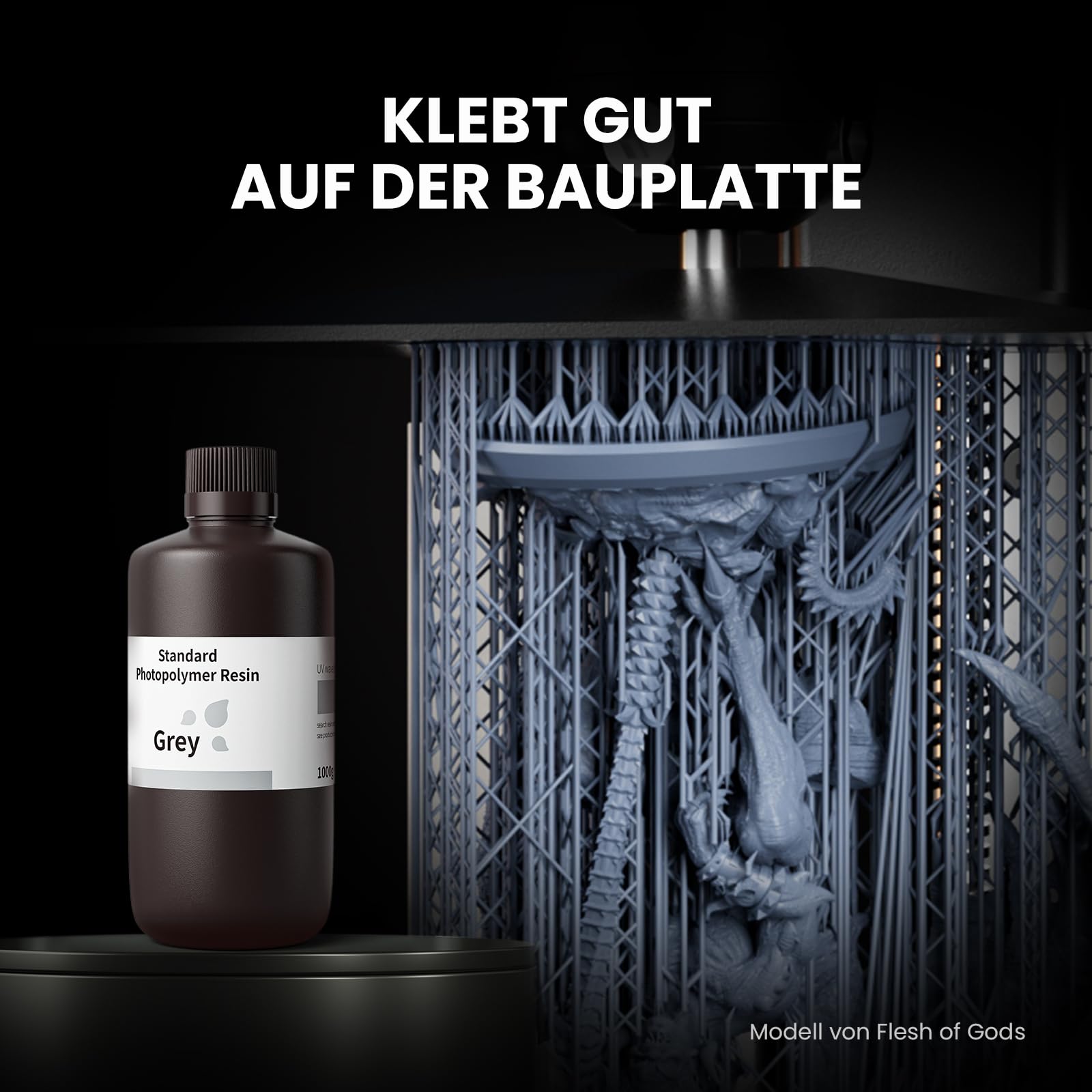 "【High Precision】ELEGOO Standard Photopolymer Resin 2.0 features high anti-background light ability and ensures that the 3D prints remain dimensionally stable during the photo curing process, without excess resin remaining on the surface. This allows for smooth surfaces, fine details, and high strength.