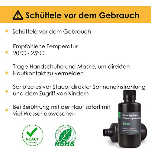 ELEGOO Water Washable 3D Printer Resin LCD UV Curing Resin 405nm Photopolymer Resin for LCD 3D Printing Clear Green 500g