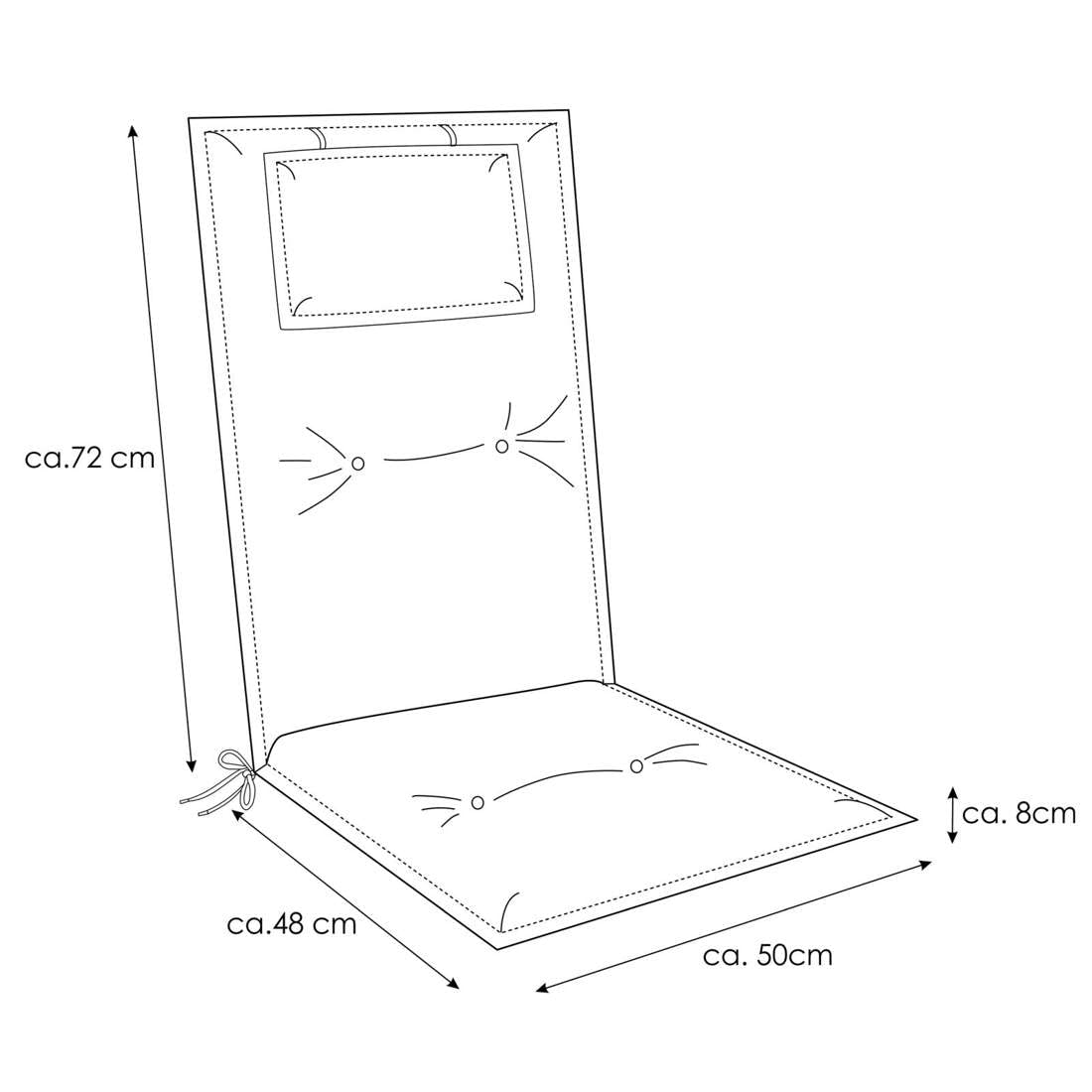 ["HIGH-QUALITY MATERIALS: The chair cushion is made of a combination of high-quality and comfortable materials. The cover is made of skin-friendly and wear-resistant polyester.","PREMIUM COMFORT: The 7 cm thick polyurethane foam core ensures optimal seating comfort. The headrest can be removed. The foam core is encased in high-quality brand polyester fleece.","SECURE FIT: The seat cushion features fastening straps on the side to secure it to the chair. There is an adjustable strap at the back that can be fastened to the backrest.","MADE IN EUROPE: The seat cushion is produced in Europe under the highest production standards and can be hand-washed. It is equipped with a comfortable 7 cm high foam core. The filling is foam with a wool coating.","BEAUTIFUL DESIGN: A perimeter standing seam with circular stitching makes the cushion a focal point. Ideal for chairs with high wooden, metal, or textile backrests."]