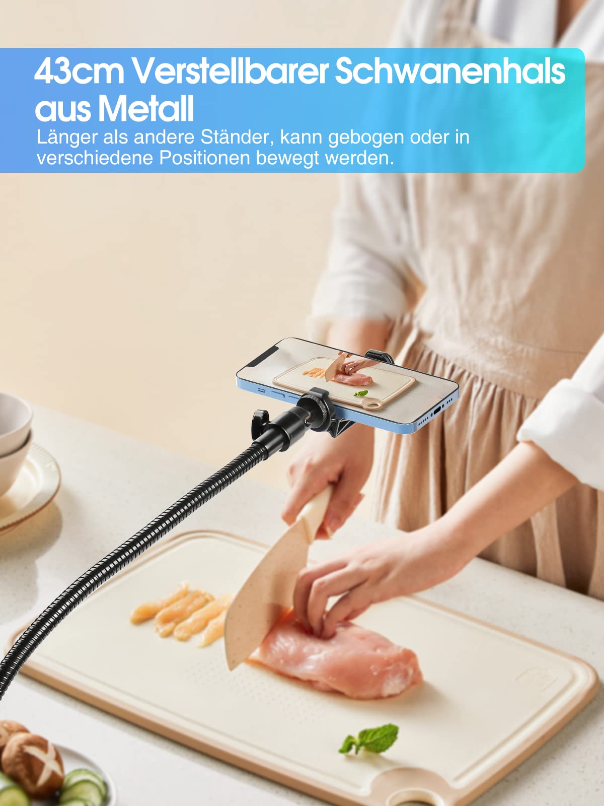 Elitehood 205cm tall phone tripod, flexible overhead iPhone tripod with 43cm adjustable gooseneck, heavy-duty aluminum tripod for iPhone 14 13 12 Pro Max Mini/Android smartphone