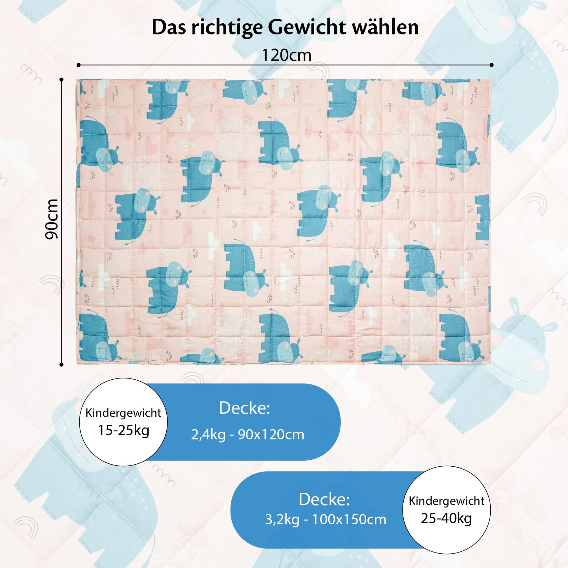 Ella Kids Weighted Blanket 5.3 lbs 36x48 inches - Therapy Blanket, for stress relief & anxiety, Hypoallergenic Glass Beads, soft & cooling Cotton Outer Layer, for children 33-55 lbs - Hippo