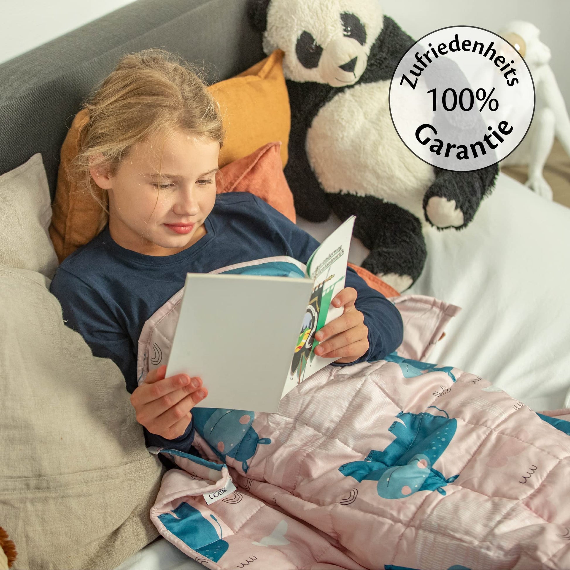 "Calm children when falling asleep - Overwhelmed by the constant distraction of mobile devices, many children today have difficulty falling asleep. Our therapy blanket soothes the body and mind of children and helps them to relax. Recommended for children aged 3 and older."