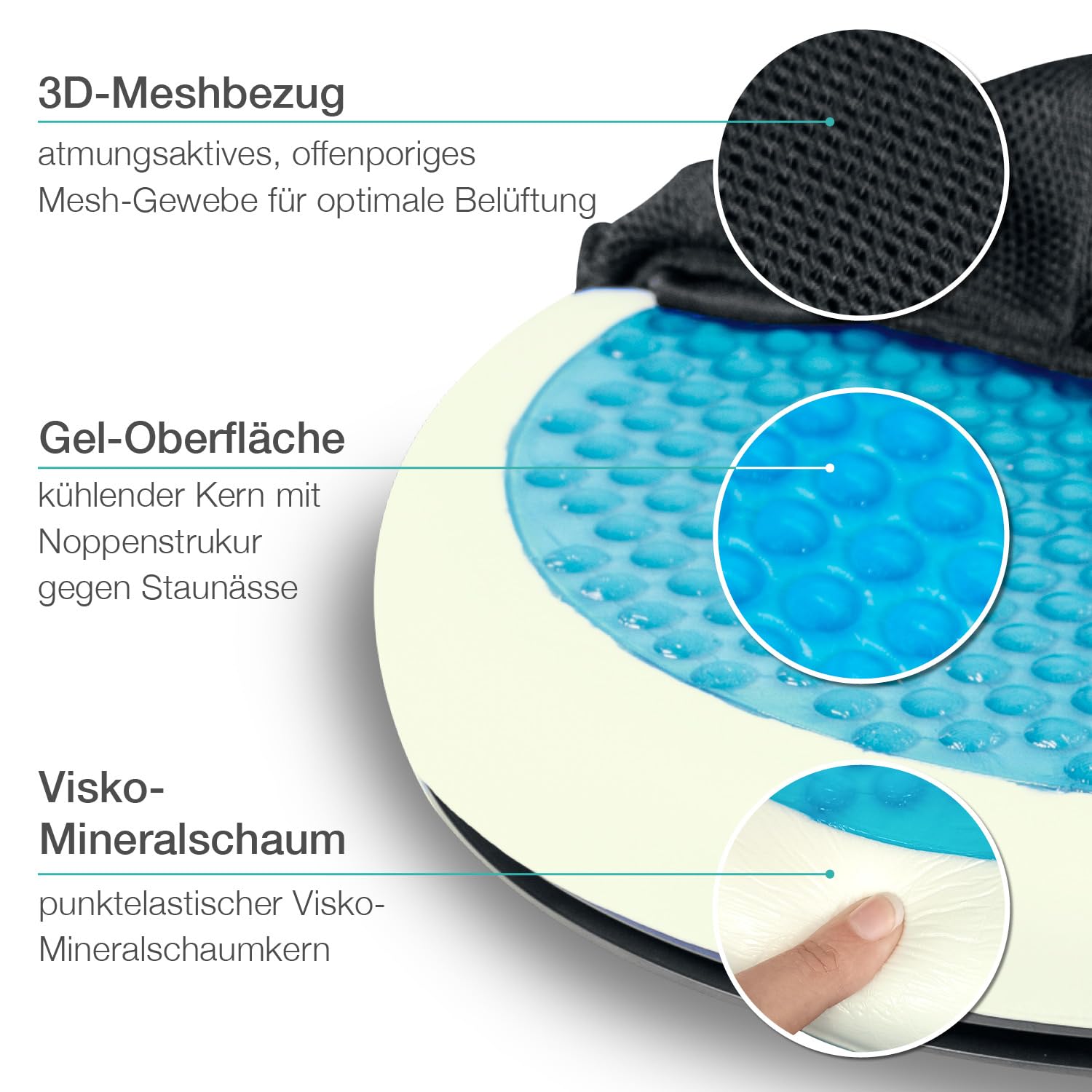["EASIER SITTING & STANDING: Whether as an entry or exit aid in the car or to facilitate sitting and standing from a chair or sofa, the swivel cushion is the perfect everyday helper.","360 DEGREE SWIVEL MECHANISM: The softly padded seat cushion is rotatable by 360° on the turntable. Thanks to this swivel mechanism, you can move your legs much easier under the table and into the car.","IDEAL SUPPORT FOR LONG SITTING: The special gel filling provides support in the seating area and makes sitting more comfortable.","WIDE SEAT AREA: With a diameter of 40 cm, the swivel seat cushion offers a comfortable seating area where the whole buttocks can fit and you can sit comfortably.","BREATHABLE & WASHABLE COVER: The washable cover made of breathable mesh fabric ensures an optimal seating climate and prevents uncomfortable heat build-up on warm days."]