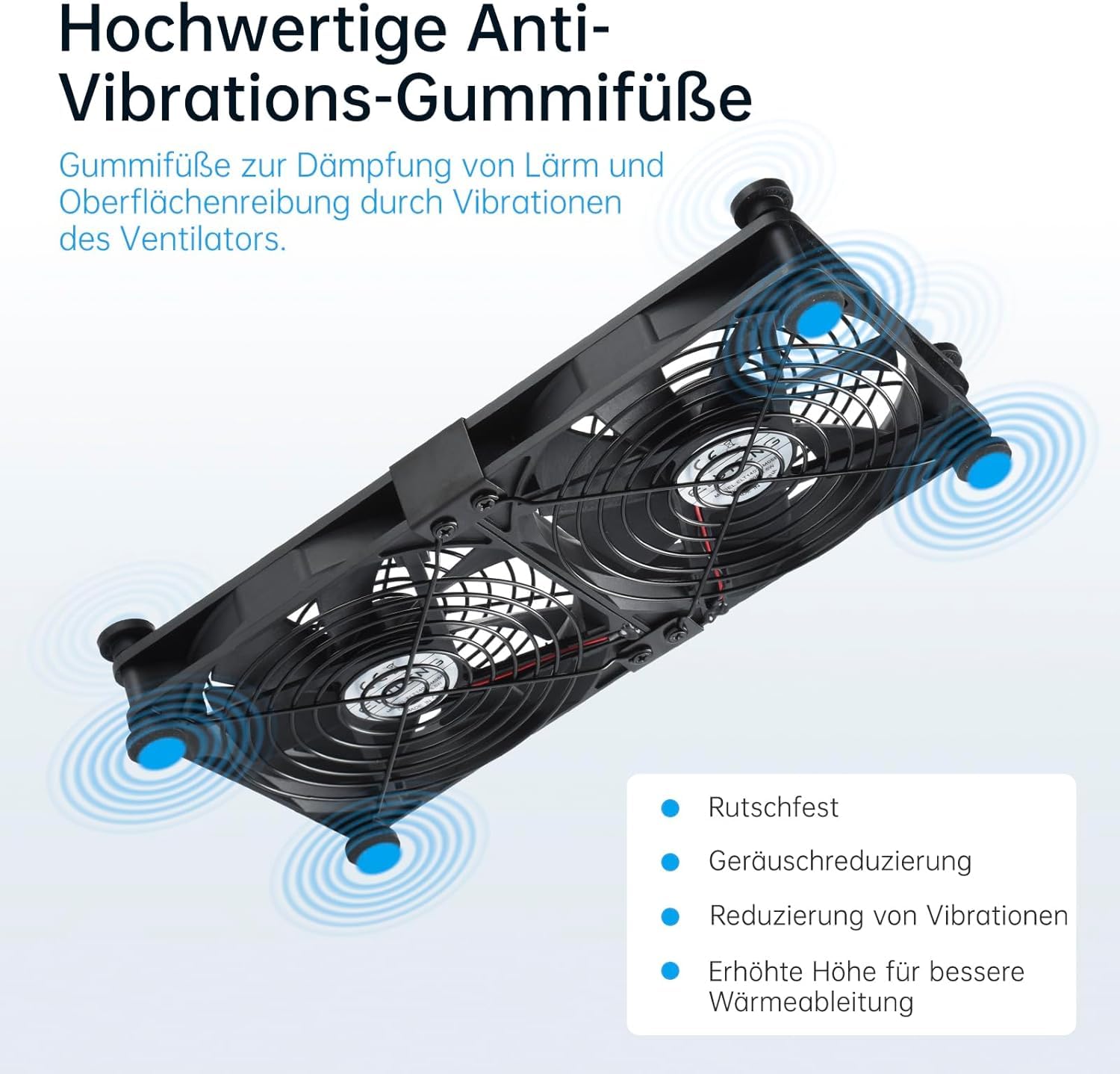 ELUTENG USB Fan 140mm 5V 2 in 1 with 3 Adjustable Speeds, Dual USB Computer Fan 140mm PC Fan 14mm with 8 Shock-Absorbing Feet for PS5 PS4/Laptop/TV Box/Router