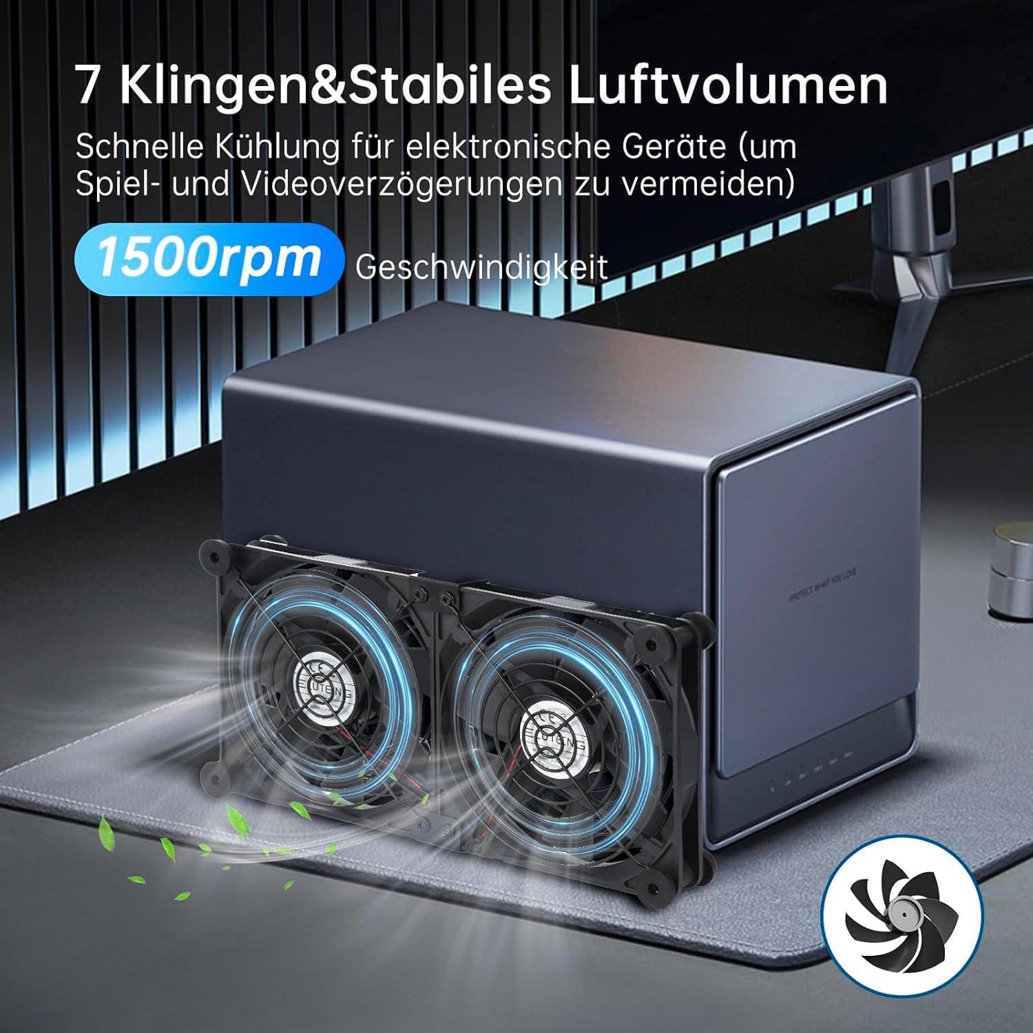["【2 in 1 Dual Row 140mm USB Fan】ELUTENG dual row 14cm USB fan, USB powered, plug and play, can place the fan horizontally or vertically, ideal for cooling PC/laptop/TV box/receiver/mobile phone/PS4/projector/instrument/router/hard drive enclosure. 2 fans are connected and run simultaneously, the cooling effect is better.","【3 Adjustable Wind Speeds】 The latest upgraded 140mm USB fan Quiet features a speed controller with 3 gears (low, medium and high) to control the wind speed. The speed is: 900/1200/1500 RPM (×2). Depending on the operating environment, you can choose between different wind speed levels.","【Durable】14cm pc fan By using hydraulic bearings and imported double ball bearings, it is very durable and has a long lifespan. The noise level is 25.6 dB (weak) to 32.5 dB (strong)","【Multiple Protection】 The bottom is equipped with 4 removable rubber shock absorbers for more convenient, safer, more stable and more reliable use. Metal grids are used on both sides to prevent the blade from injuring fingers during operation and damaging the wire. The corner joint is equipped with cable protection glue, which is wear-resistant, not easy to break, and safer and more reliable to use.","【Wide Applicability】 Size: 14 x 14 x 2.5 cm (×2); Cable length: 1 m. It is not only suitable for cooling devices such as PCs, routers, and hard drives, but also for AV devices and game consoles. Simply connect a device equipped with a USB port to start cooling without cumbersome wiring."]