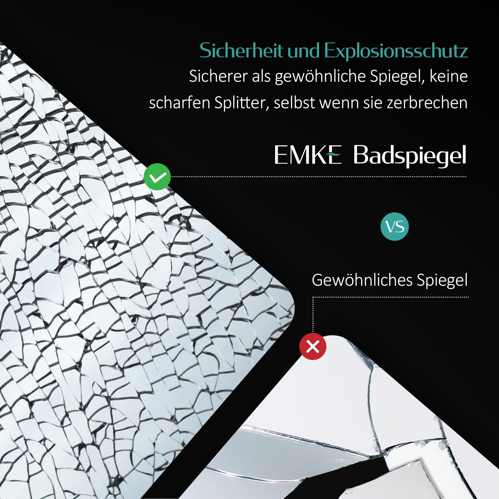 EMKE bathroom mirror with lighting 80x60cm with touch, anti-fog, adjustable brightness, memory function, cool white 6500K energy-saving bathroom mirror with lighting