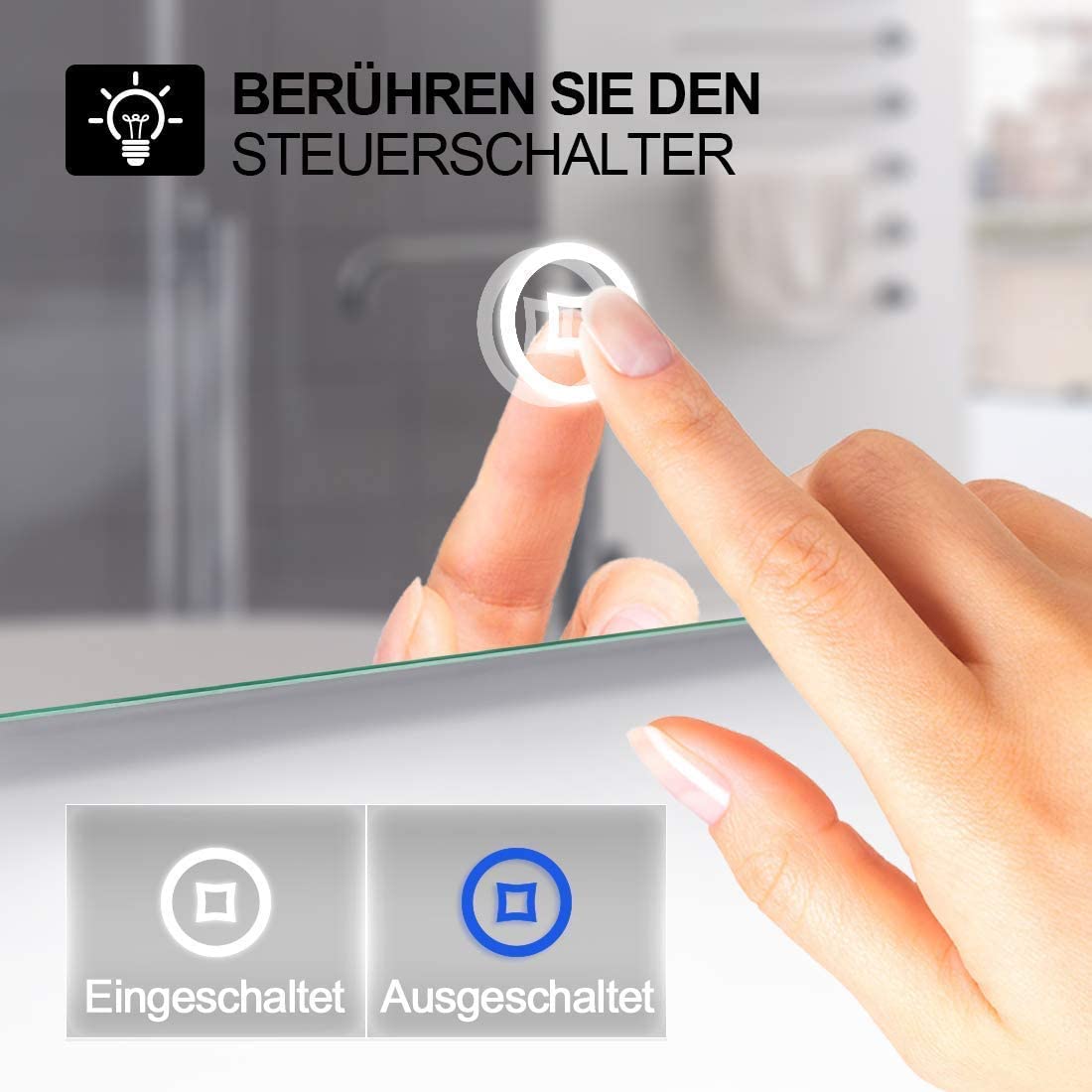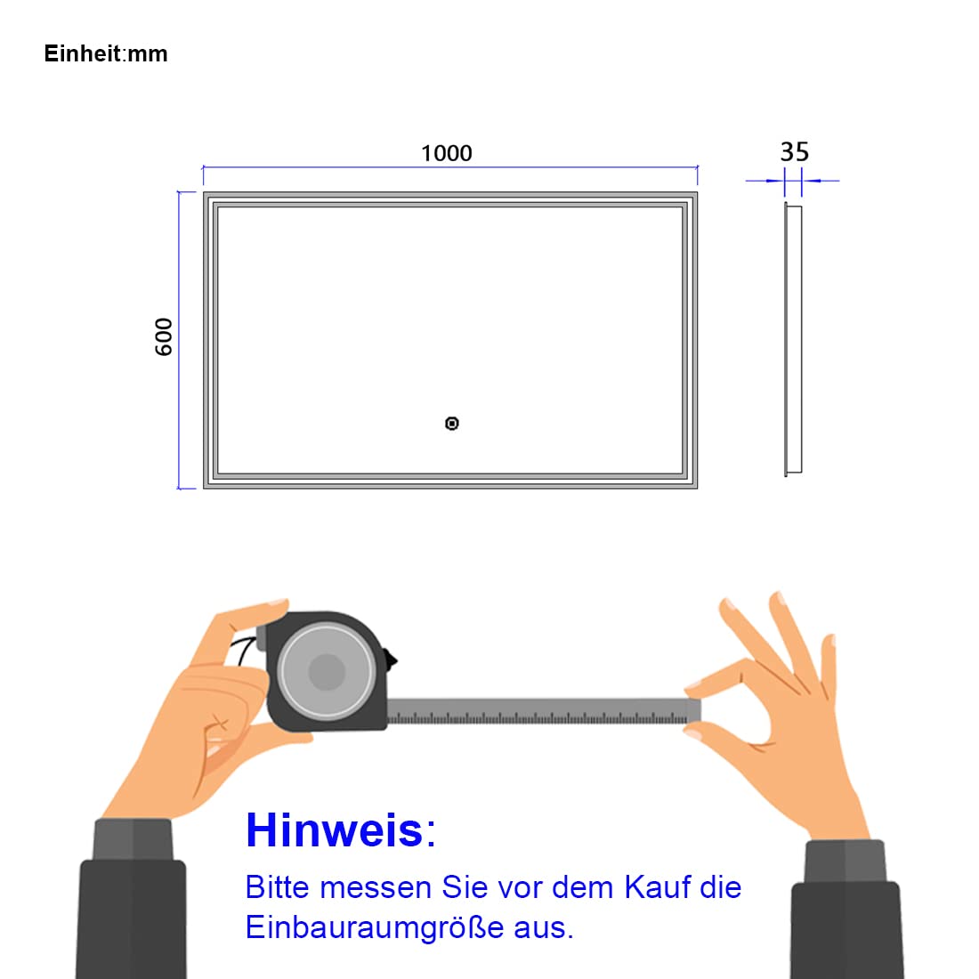 "【Mirror size】100 x 60 cm, bathroom mirror with lighting with touch switch, 3 light colors dimmable. The LED bathroom mirror comes with the necessary mounting accessories and a German installation manual for quick wall installation.