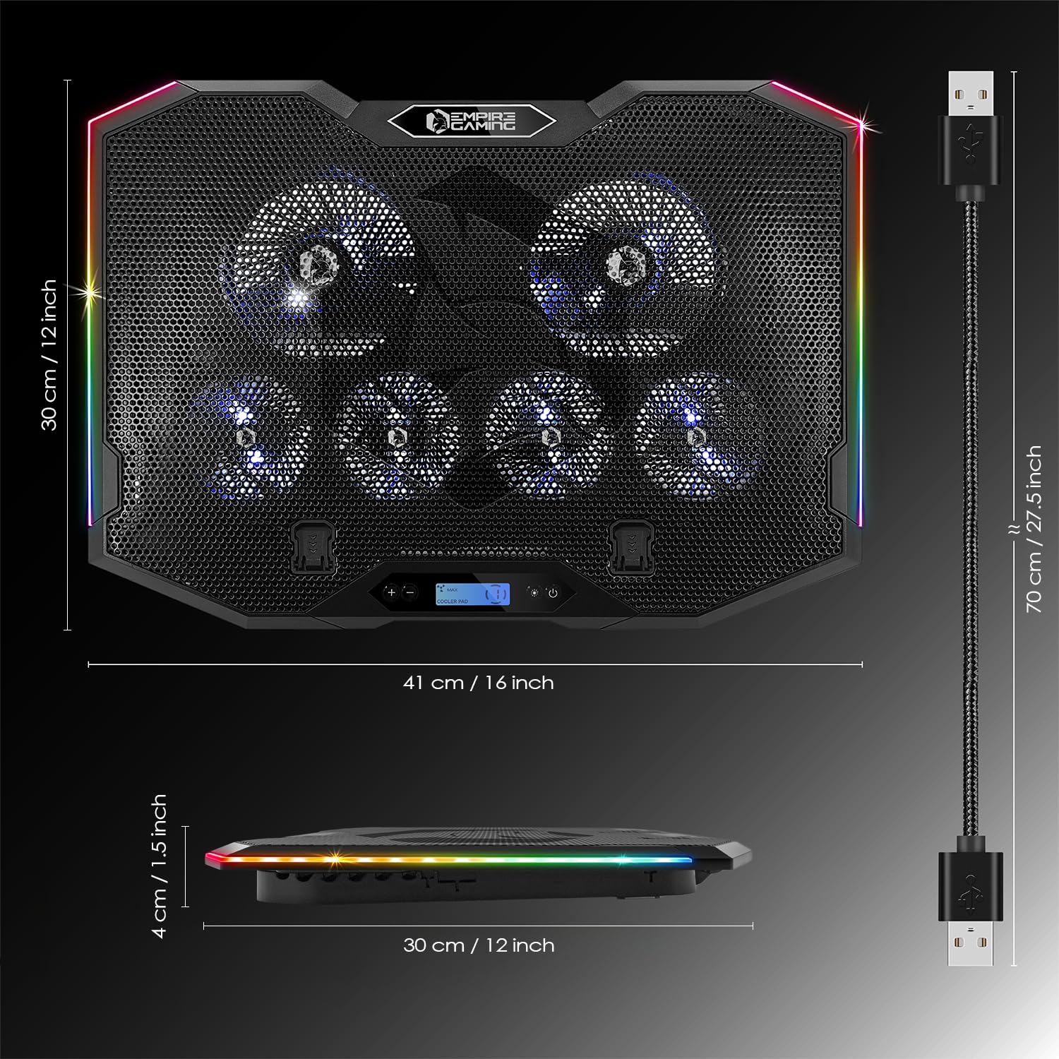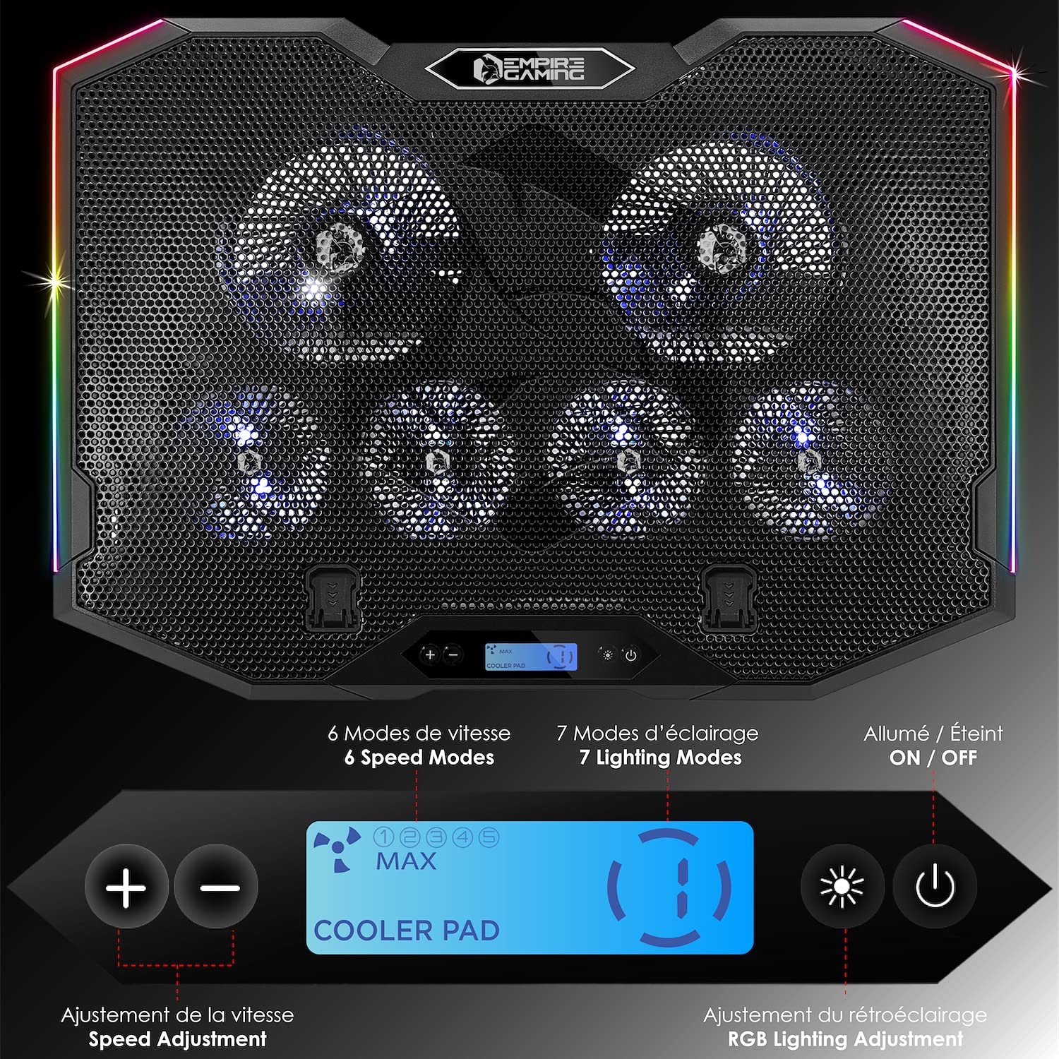 EMPIRE GAMING - Guardian S-C100 Laptop Cooler RGB Gamer - 6 Fans - LCD Controller - 5 Height Adjustments - Compatible for 12 to 17 Inches - Detachable Smartphone Holder, Air