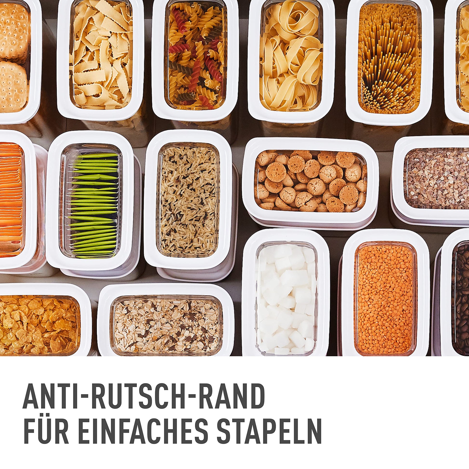 "100% space-saving: With coordinated sizes that fit into all standard kitchen cabinets, and with non-slip stacking edges; transparent design for maximum visibility",