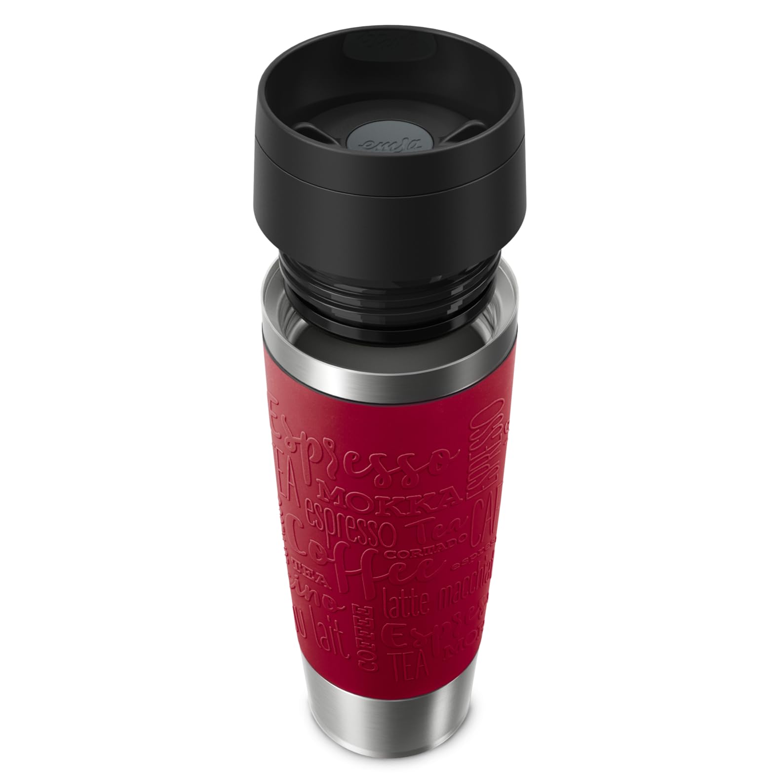 Emsa N20222 Travel Mug Classic insulated mug 0.5 liters, new comfort screw cap, stainless steel, keeps hot for 6h and cold for 12h, 100% leak-proof, dishwasher safe, 360° drinking opening, Dark Red