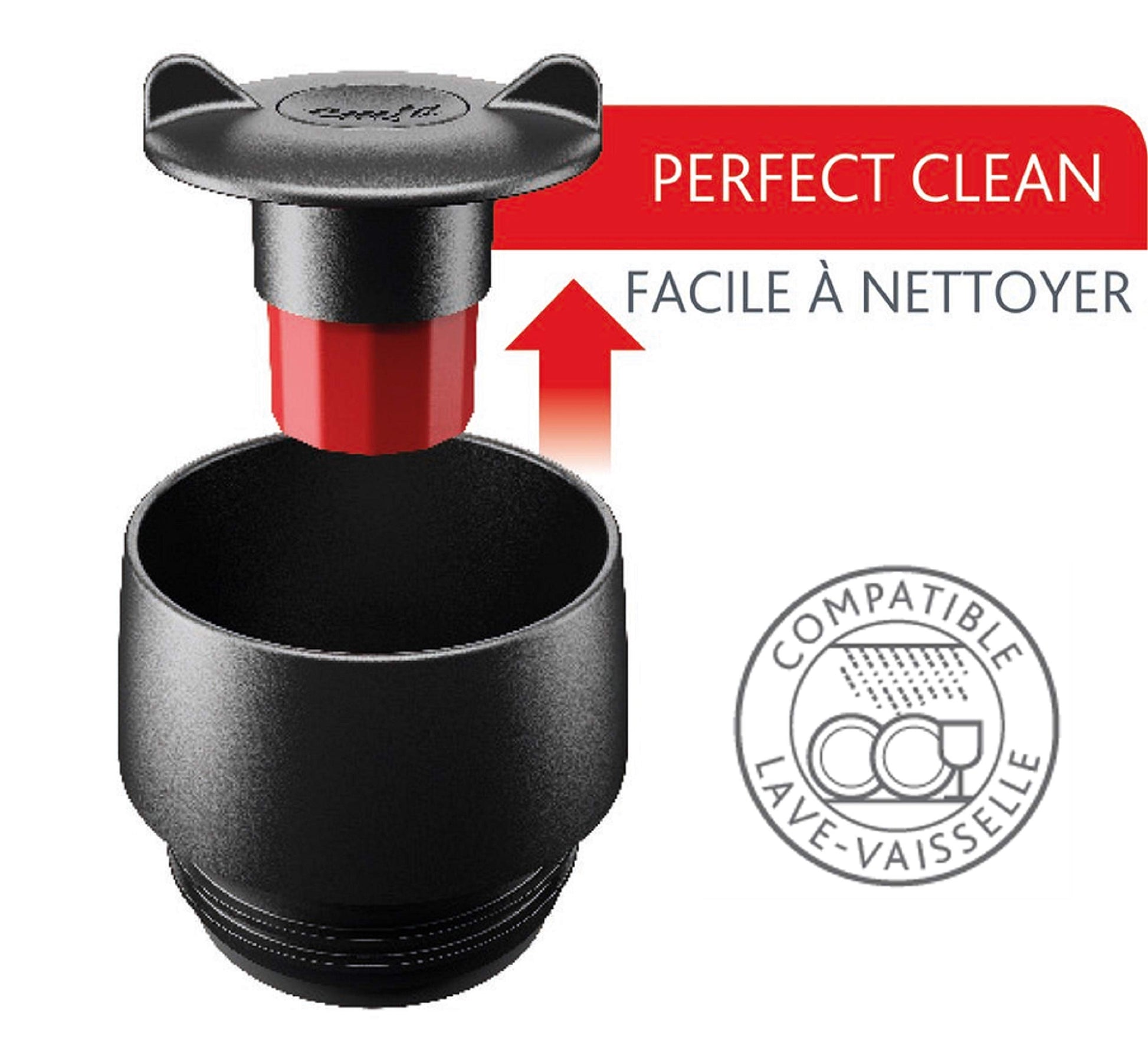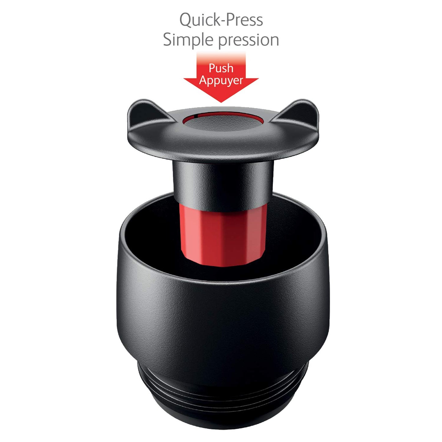 ["Optimal insulation: Keeps drinks hot for up to 6 hours or cold for 12 hours", "360° drinking opening: Drinking from any side, perfect for driving", "Convenient one-handed operation thanks to Quick Press closure", "Absolutely robust made of double-walled stainless steel (18/10)", "Optimal cleaning: Lid can be disassembled into two parts and completely dishwasher safe", "Attractive silicone sleeve with trendy wave-nature pattern and non-slip bottom ensures stability"]