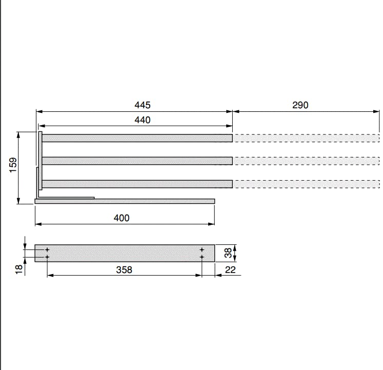 "Features three arms with a length of 439 mm, which can be rotated by 90º.