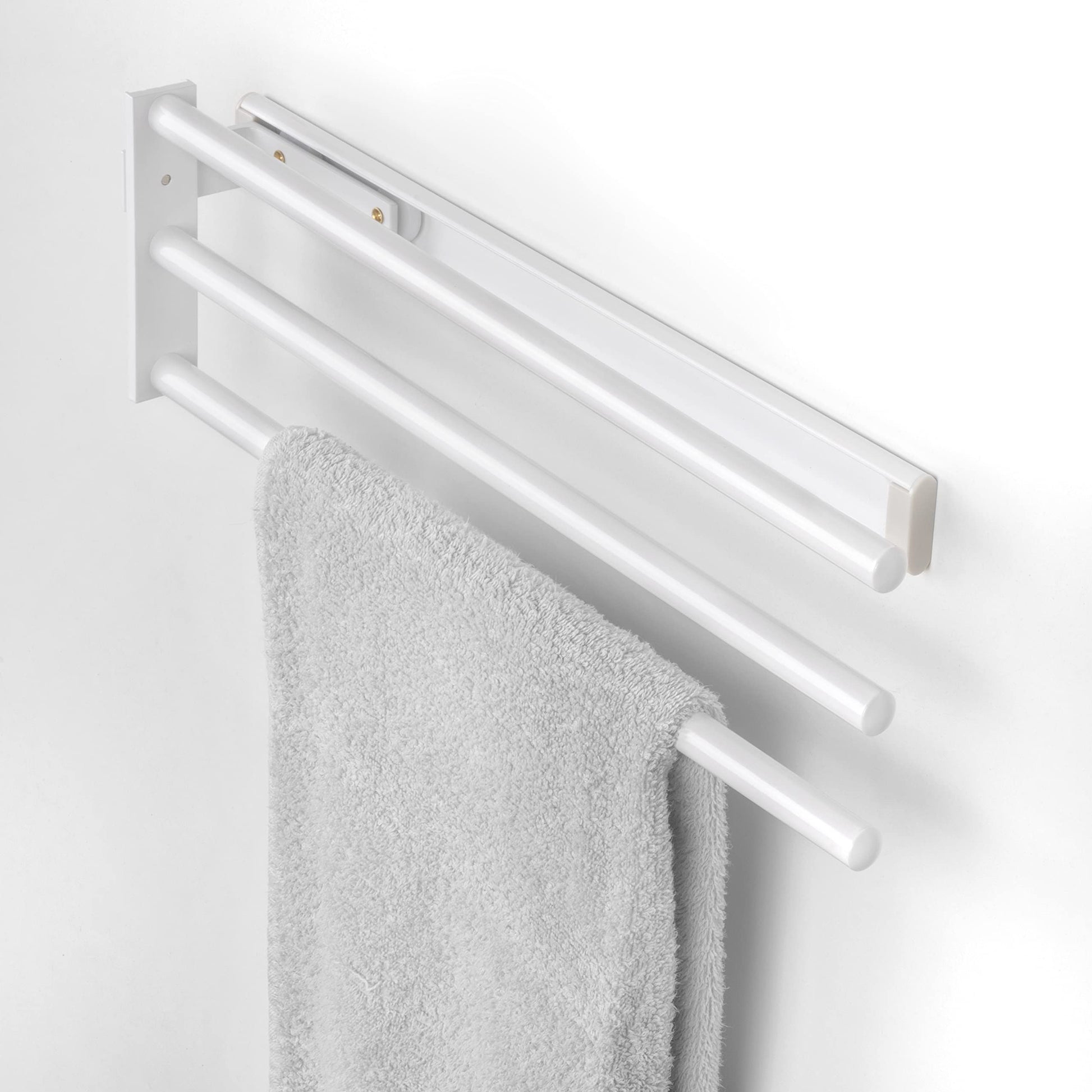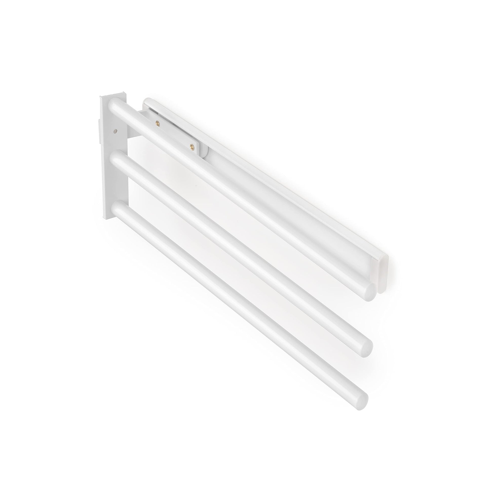 Emuca - Extendable towel rack, 3 arms, towel holder for kitchen or bathroom, 440mm, aluminum, white.