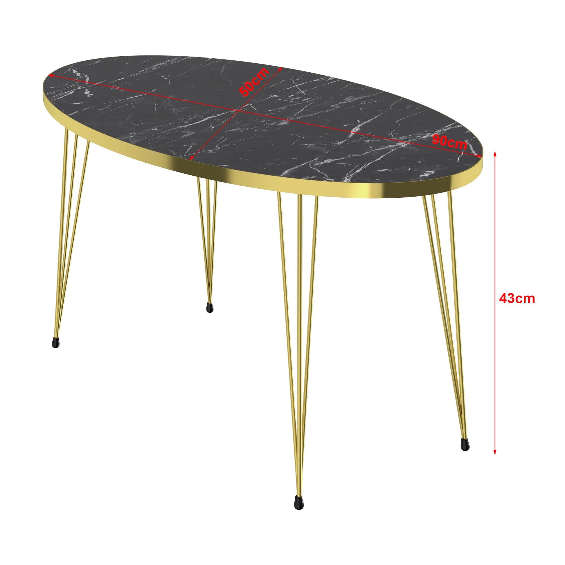 [en.casa] Coffee table Skævinge side table 43 x 90 x 50 cm Made of chipboard and metal Coffee table for living room bedroom Marble, black/gold