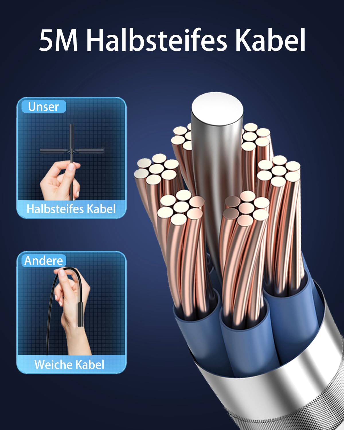 "Wide Range of Applications: Handheld endoscope cameras are widely used in DIY projects, car repairs, machine inspections, household appliance repairs, sewer inspections, plumbing inspections, drain inspections, and so on. Pipe camera has a focal length range of 0.78~3.93 inches (2 - 10cm) with an 8mm miniature camera, 5M semi-rigid cable that can be easily bent and returned to its original shape, making it easy to reach into any tight spot."