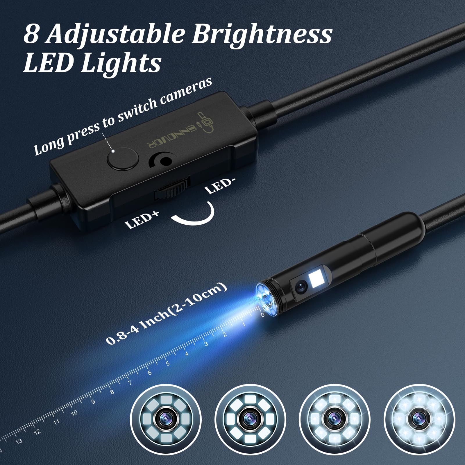 Endoscope camera with light, Ennovor 1920 HD dual-head endoscope camera for mobile phones with 8 LED lights. No WiFi inspection camera, waterproof IP67 sewer camera for Android & iOS, tablets (32.8 ft/10m).