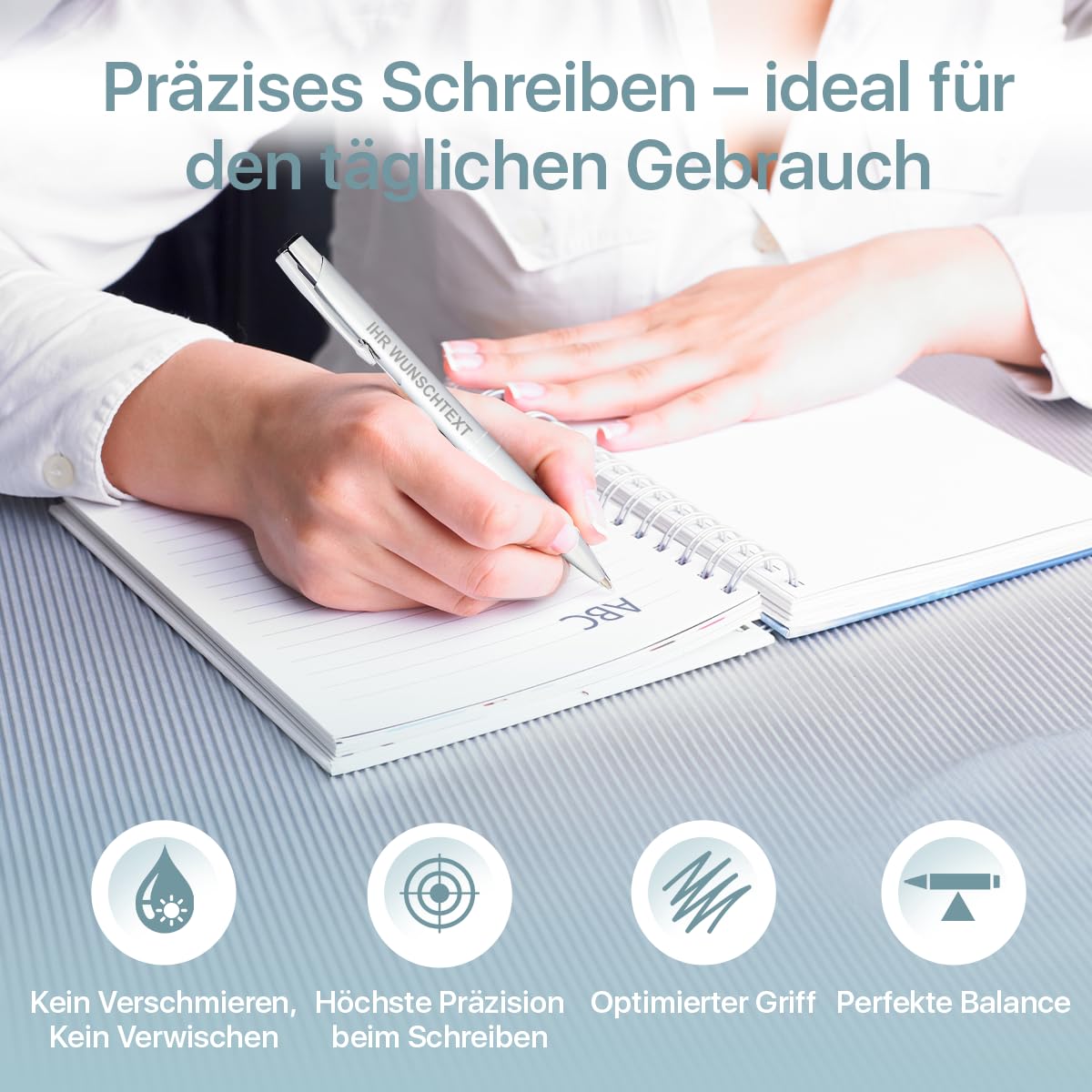 ["ποΈ Personalized Engraving: Give your pen a personal touch! Your desired text or name will be precisely engraved - a small gesture with a big impact. Perfect as a gift for weddings, birthdays, or anniversaries.","π Perfect Gift: Make others happy! The personalized pen is ideal for friends, colleagues, teachers, or family - as a loving gift, thank you, or stylish favor.","π οΈ High Quality: Sturdy metal pen with a smooth surface and a comfortable writing blue ink. Fits well in the hand and writes reliably - perfect for office, school, or everyday use.","π‘ Important Details: The engraving is permanent and smudge-proof - even with daily use. Thanks to the smooth mechanism, you can write effortlessly without smudging or scratching.","π¦ Fast Processing: Each pen is engraved and quickly shipped right after ordering. Our customer service is always available to answer any questions or concerns."]