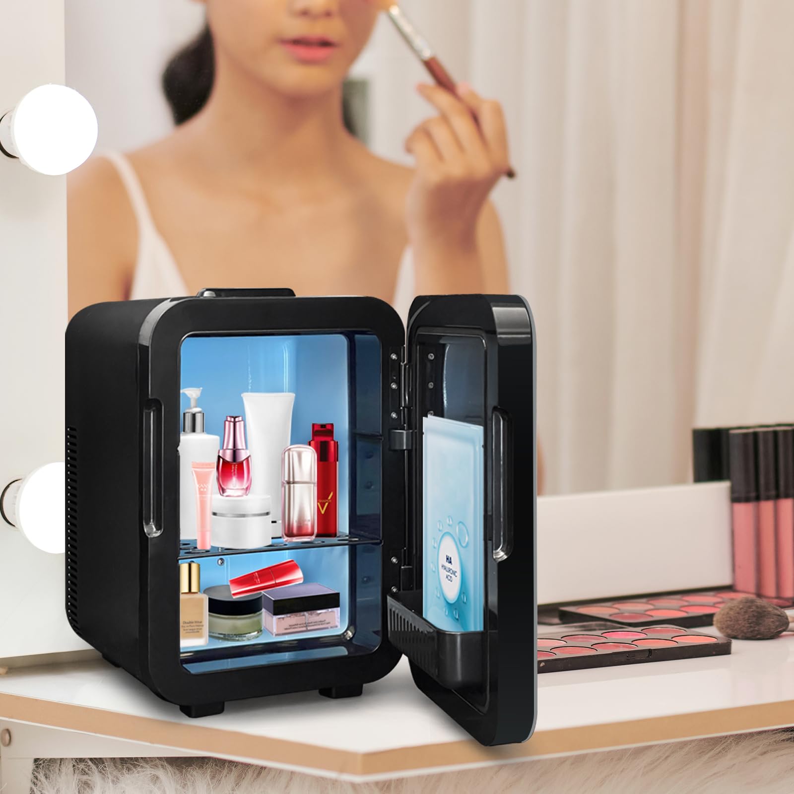 ["❉【10L Mini Fridge】Fits 10-12 cans of 330ml each, its internal dimensions are (H) 28cm x (W) 18.5cm x (D) 20.4cm. This compact 10-liter mini fridge comes with a removable shelf to easily separate snacks and drinks, breast milk, as well as beauty and skincare products.","❉【Customize Temperature Control and Dual-Core Cooling System Individually】Simply touch the buttons up and down to adjust and set the desired temperature. The LCD temperature display is easy to read. The dual-core cooling system cools your drinks faster than a single-core system, providing better cooling performance.","❉ 【Cool and Warm】Equipped with an advanced thermoelectric system, it can be cooled to 18-20°C below ambient temperature or heated to 55±5°C. Enjoy a cool drink on hot summer days and a hot cup of coffee on cold winter days. (NOTE: Cool mode: Minimum temperature depends on ambient temperature. Hot mode: Used to maintain the original temperature of food instead of heating it up.)","❉【With AC 220V / DC 12V Adapter】AC 220V power cord for standard socket, DC 12V power cord for 12V vehicle cigarette lighter. Makes this portable fridge a great cooler for home and outdoor travel.","❉ 【Environmentally Friendly and Safe】Uses advanced safety technology, intelligent semiconductor chips, 100% freon-free and environmentally friendly. 12 months warranty. ENVENTOR is committed to providing satisfactory customer service to its customers. If you have any questions during use, please contact us in time and we will respond within 24 hours."]
