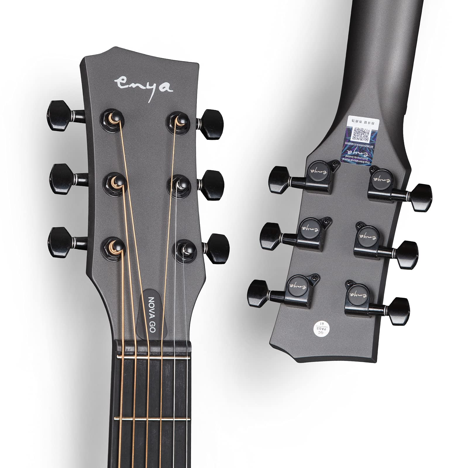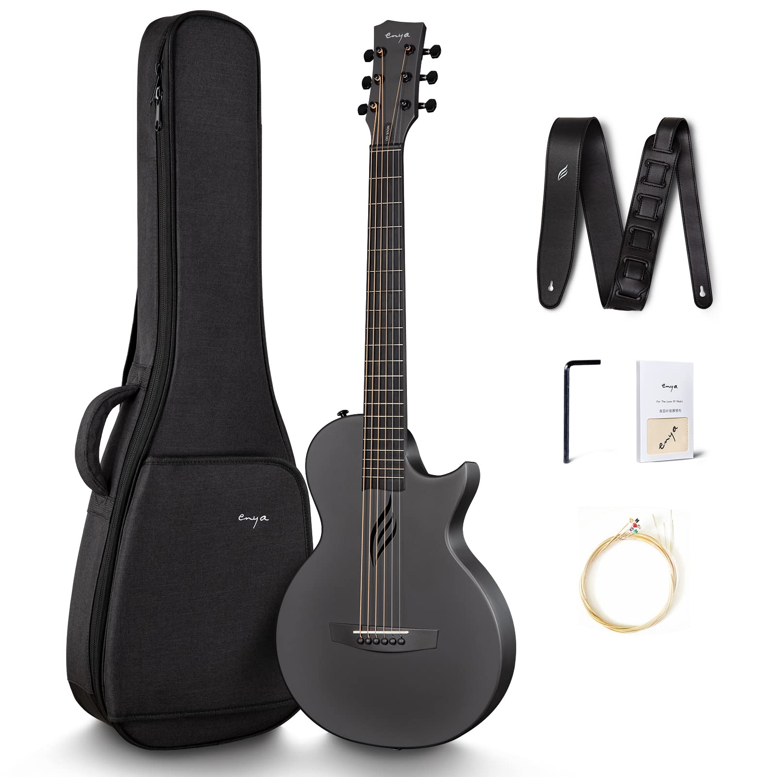 Enya Nova Go carbon fiber acoustic guitar, 1/2 size, beginner guitar for adults, travel, acoustic, with gift box, EVA gig bag, guitar strap, cleaning cloth (Black)