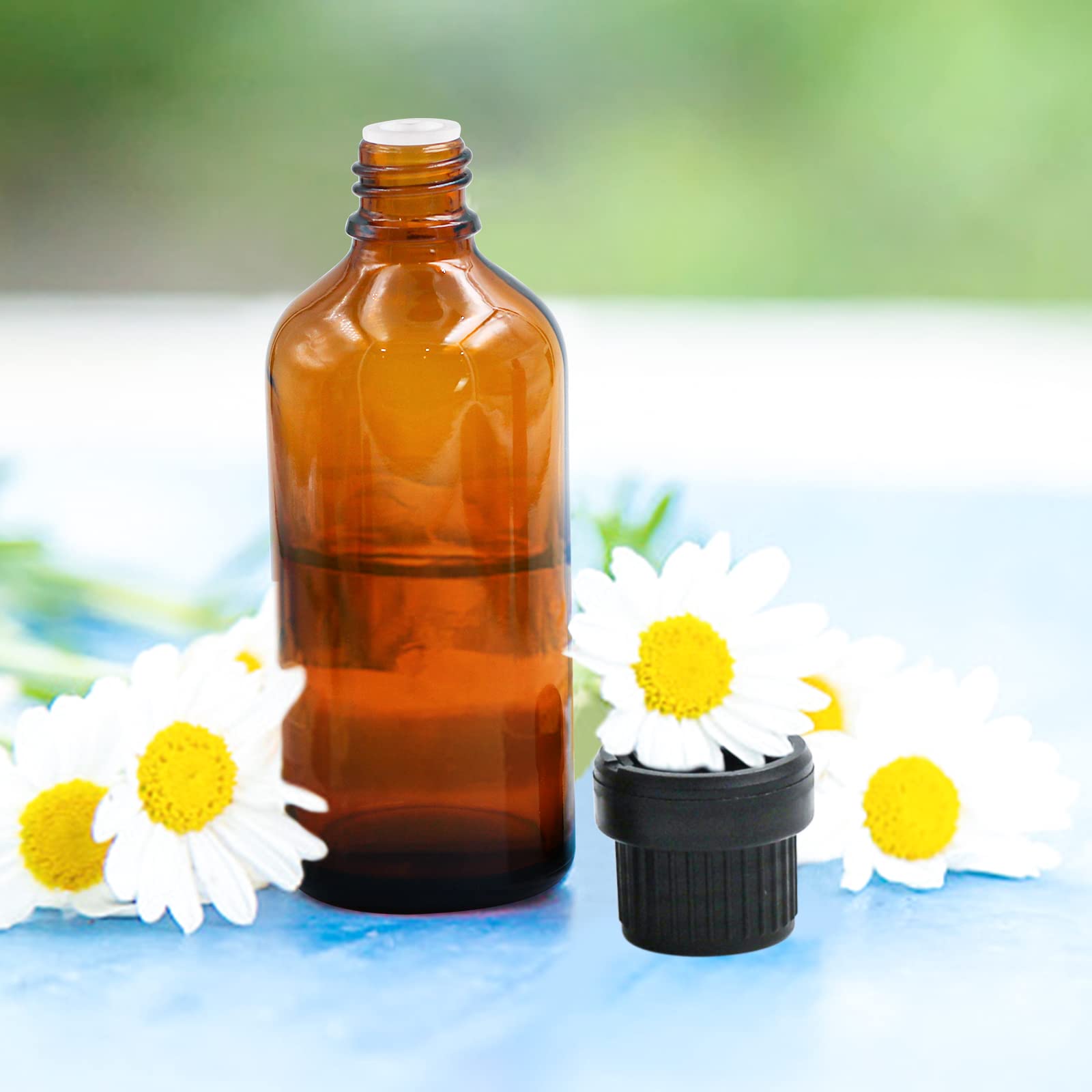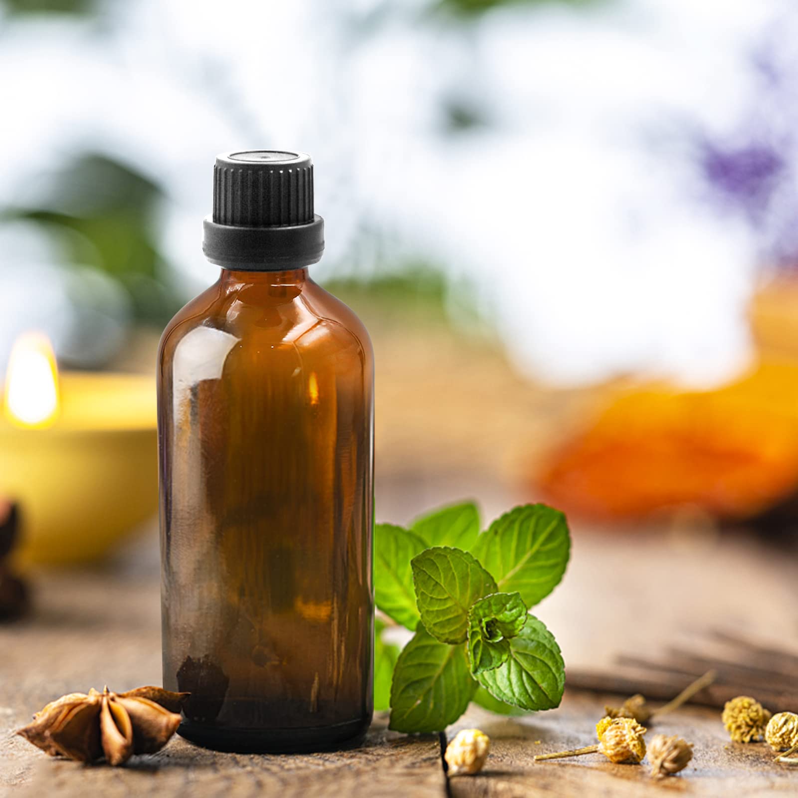 ["UNIVERSALLY APPLICABLE - With a dropper insert made of high-density polyethylene, these dropper bottles are suitable for a wide range of liquids such as aromatics, fragrances, essential oils, witch hazel, rose water, perfume, disinfectants, etc.","SAFE MATERIAL - The dropper bottles are made of brown glass, making them ideal for storing substances that need to be protected from light. This is because brown glass, unlike clear glass, protects the contents well from light by absorbing a large portion of UV radiation.","TIGHT & PORTABLE - The dropper bottles are completely leak-proof and provide a secure storage option for countless liquids. Due to their small size, they can also be used on the go and stored in a handbag or backpack.","EASY DOSING - The brown glass bottles have a black cap with an integrated dropper insert. The dropper allows for precise and clean dosing of various liquids.","PACKAGE CONTENTS - 12 x 100 ml brown glass bottle, 5 x 1 ml dropper, 2 x funnel, 2 x label, and a 2 ml syringe in break-proof packaging."]