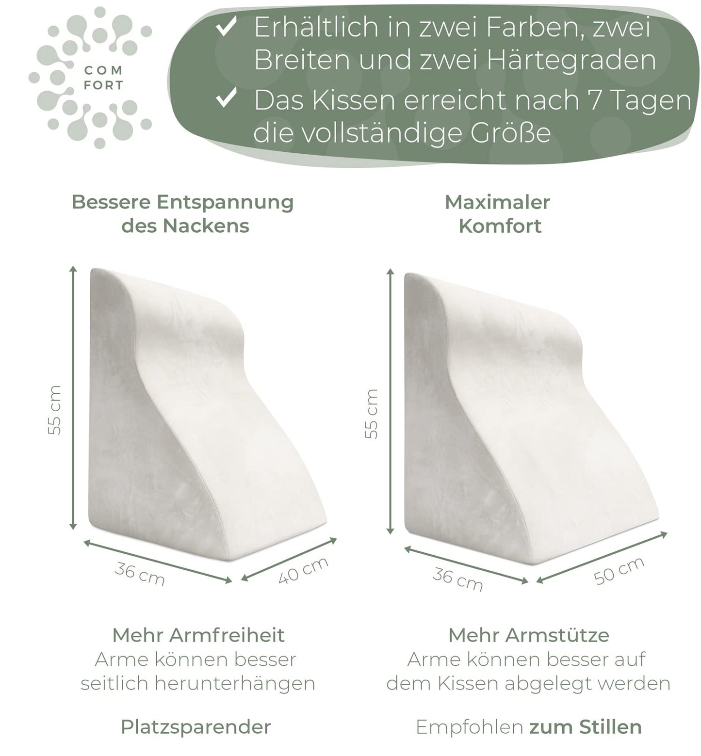 ππ₯ππ’π‘π’π ππ¦πππ ππ’π₯π β Adapted to the natural shape of the spine, the reading pillow is ideal for watching TV, gaming, reading, or working. Resilient, it can also be used as a headrest and bed headboard.","π± π¨π πͺπππ§ππ₯ππ¨π‘πππππ β The bed wedge is compressed for transportation. This allows for significant reduction in pollutants throughout the entire supply chain. The seat wedge fully expands in 5-7 days."]