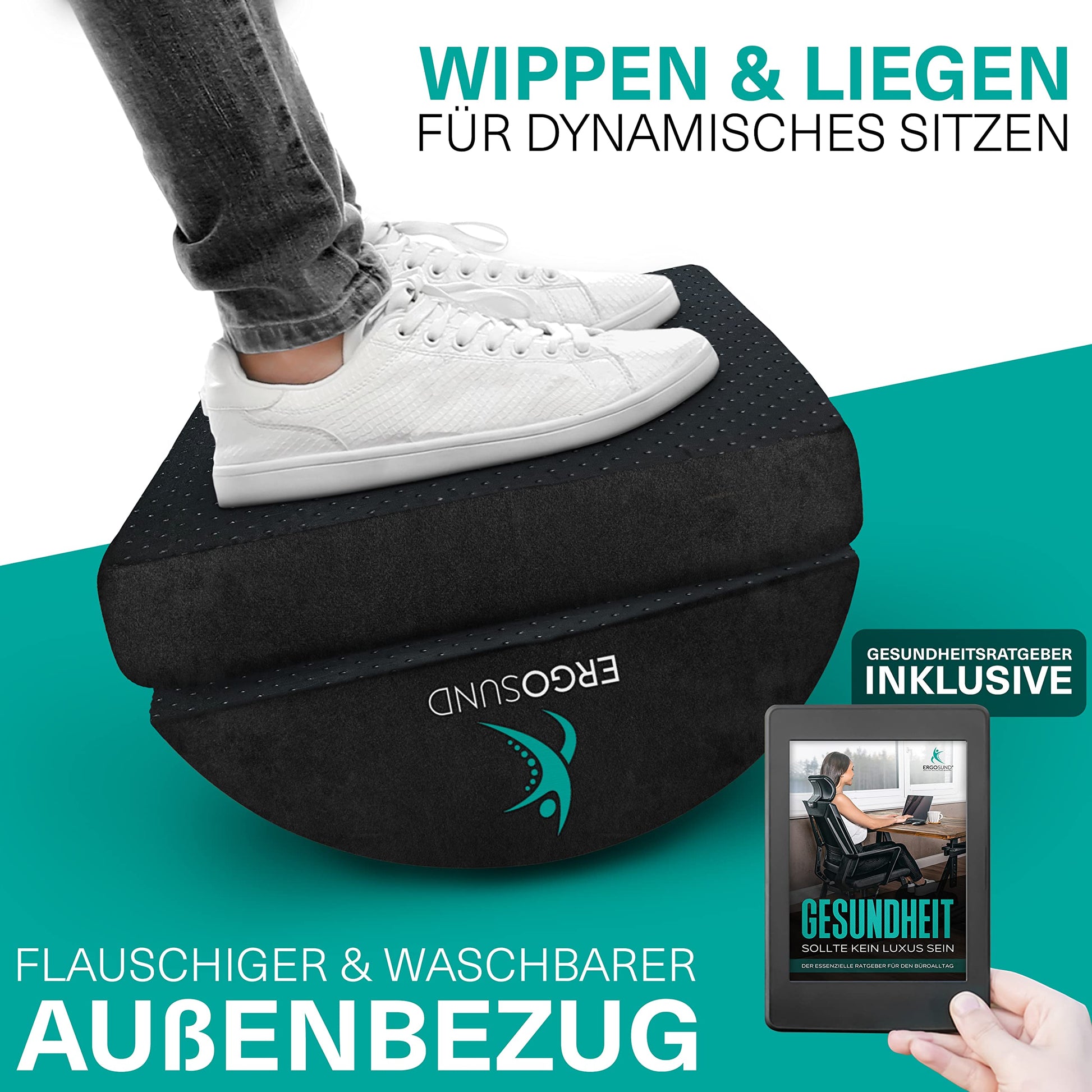 ["TOO MANY OFFICE WORKERS - Too many people working at desks are proven to harm themselves with an unhealthy sitting posture! We help improve your sitting posture and body position at the workplace!","ERGONOMIC FOOTREST SOLUTION - For our footrests, we only use the highest quality 32D specialized foam! This ensures the optimal support of your posture at the workplace, as well as outstanding long-term quality!","GOODBYE SLIPPERY FOOTRESTS - Say goodbye to poorly made and slippery footrests! Whether on laminate or carpet, our improved "anti-slip concept" of the desk footrest provides rock-solid support on any type of floor, without discoloration!","HOHE KINDERLEICHTE ANPASSBAR - Whether in the home office or in the office, our height-adjustable footstool can be perfectly adapted to your needs and to any new situation! And that within seconds - with just one hand!","ERGONOMIC MARKENVERSPECHEN - We proudly provide quality that maintains posture! If you happen to be dissatisfied with our desk footrest, you can easily return the foot cushion to us. Do yourself and your posture a favor!"]