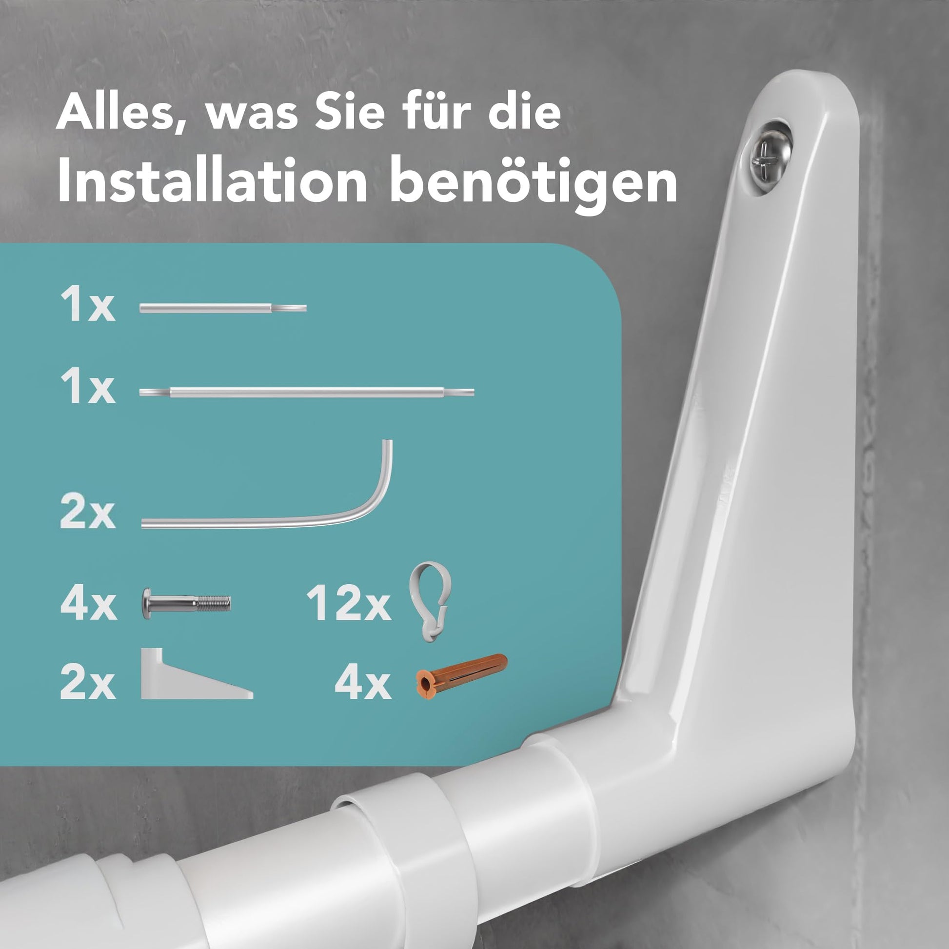 "Versatile design: Thanks to the 4-in-1 functionality, this system offers unparalleled flexibility. Choose between two U-shaped or two L-shaped shower curtain rods, depending on your bathroom layout. Perfect for bathtubs against straight walls or in corners."