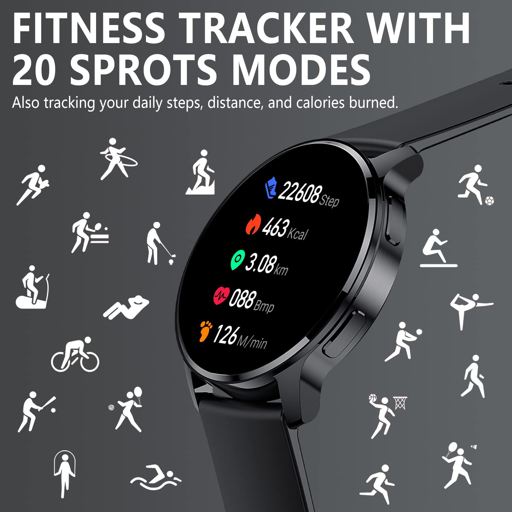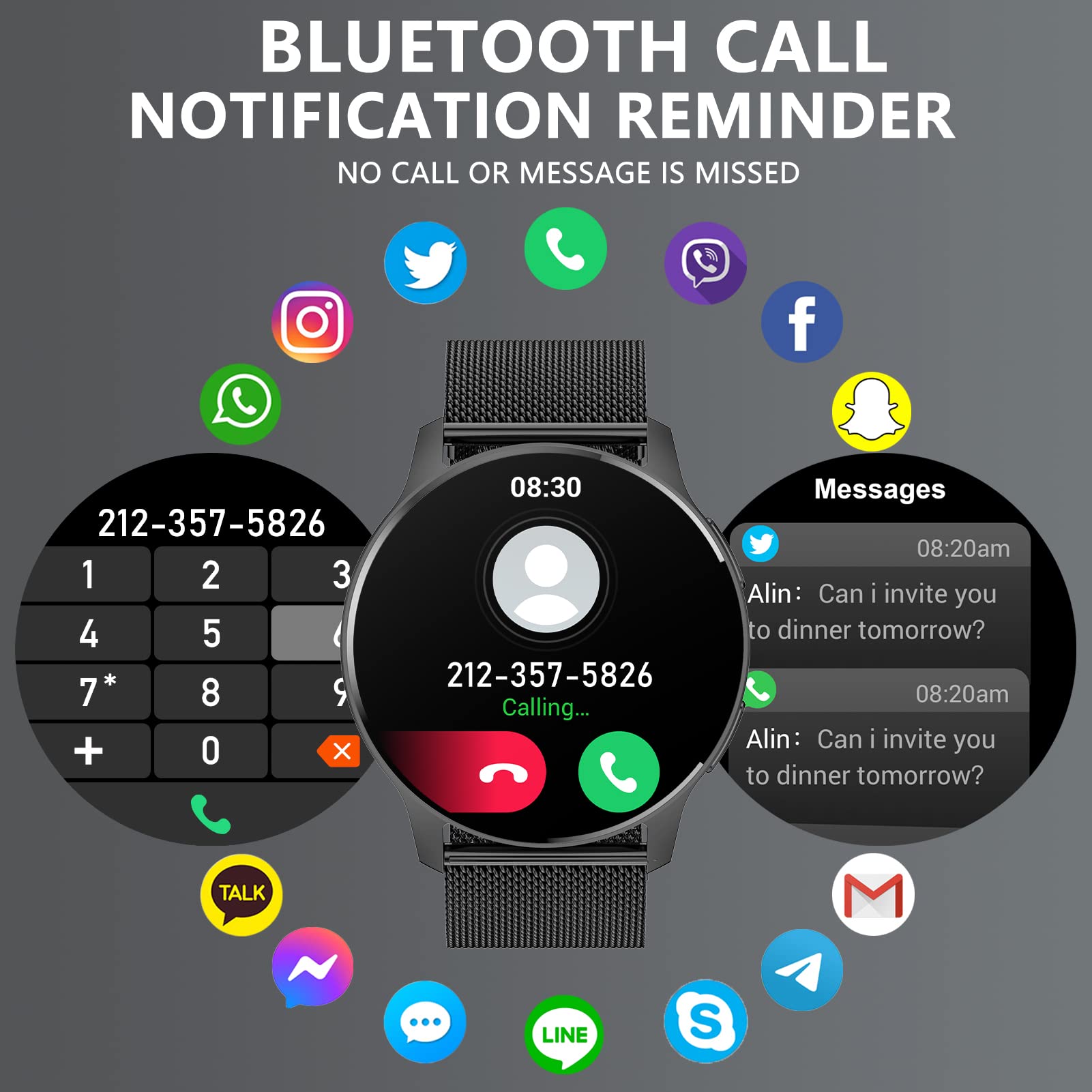 "Bluetooth calls and smart notifications: Women's smartwatch with microphone and speaker, you can make and receive clear calls and stay in touch with family and friends. The ladies' wristwatch vibrates to notify you when receiving SMS and SNS notifications (WhatsApp, Instagram, etc.). Never miss a notification or call again. Your phone's AI voice assistant can be controlled through the digital women's watch","200+ dials and personalized watch faces: Round smart watch for women with 1.32-inch high-resolution screen and ultra-thin metal frame, providing a more comfortable touch and excellent viewing experience. The app has over 200 free watch faces to choose from. You can also create personalized watch faces with your favorite photos. Women's watch comes with 3 bands, the silver stainless steel band is elegant, while the pink and white silicone bands are casual","Activity tracker and 20 sports modes: The fitness watch for women with sports sensors detects and records all daily activities such as steps, calories, and distances. The fitness tracker for women also supports 20 sports modes (walking, running, etc.) and monitors heart rate, calories burned, active steps, and minutes during exercise. You can see more detailed data in the app to help you reach your fitness goals. The best choice for sports enthusiasts","Health monitoring: The digital watch is based on photoelectric principles and easily detects heart rate, blood oxygen, blood pressure, and menstrual cycle. Sleep duration can be automatically monitored (21:00-9:00) when wearing the watch to sleep, including deep sleep, light sleep, and waking up, to help you develop a healthy biological rhythm. Women's watch helps you better understand what's happening in your body and helps you live healthier","Various useful functions: The sports watch for women can also serve as an assistant and offers many useful functions such as finding your phone, vibration alarm, sedentary and hydration reminders, time display, music/camera control, helping you live more comfortably. IP67 waterproof watch, hand washing and sweating are not problems. (Not suitable for hot baths or sea water) Digital watch for women with 270 mAh battery, can be used for 3-7 days of working time (depending on individual usage)"