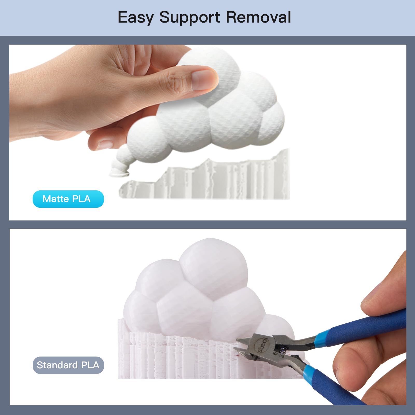 ""Matte effect: Matte filaments can output prints with lackluster color and frosted texture. The surface is incredibly matte, which helps hide the individual layers of your print.