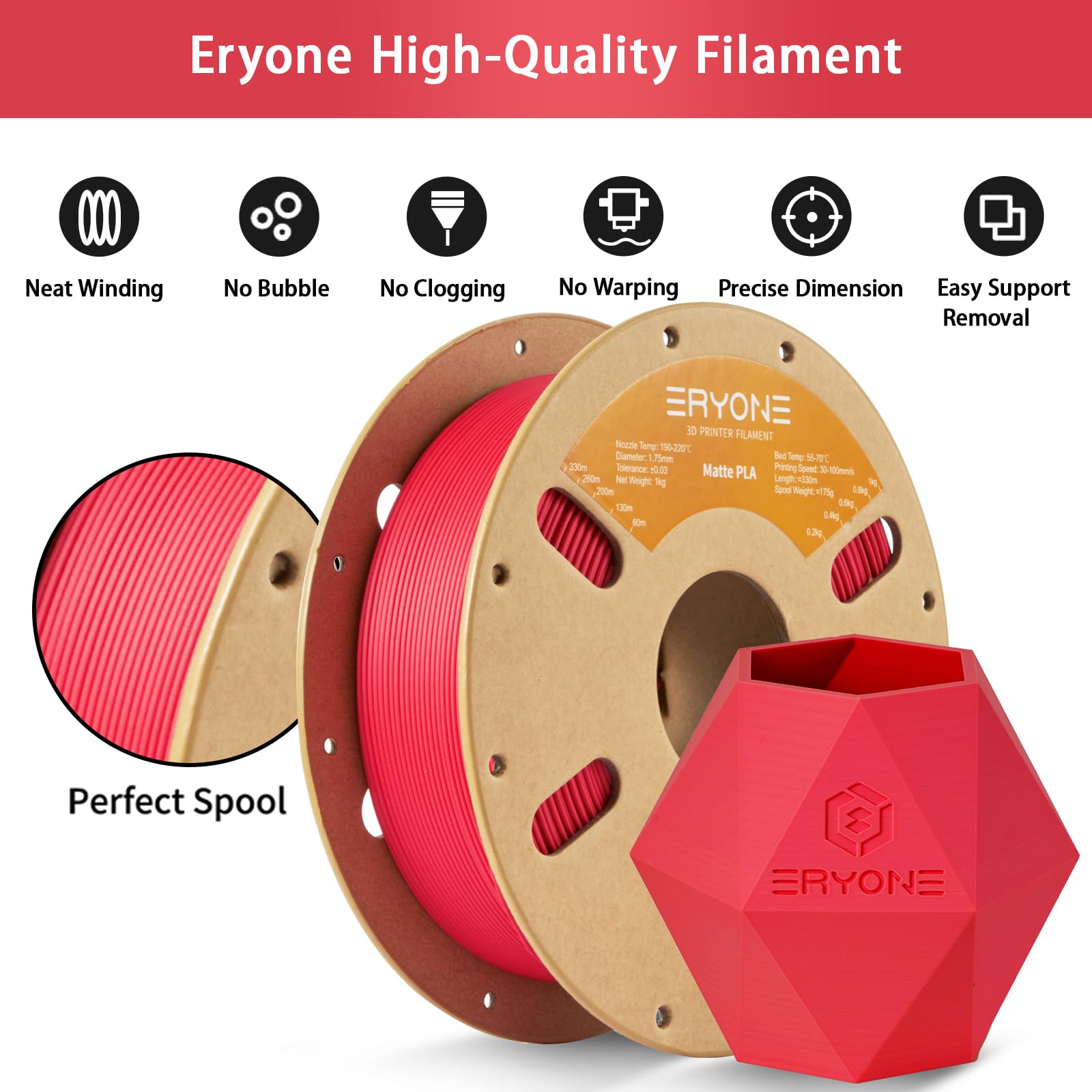 ERYONE Matte PLA 3D Printer Filament 1.75mm, Precision +/- 0.03mm, 1kg 1 Spool, Matte Red