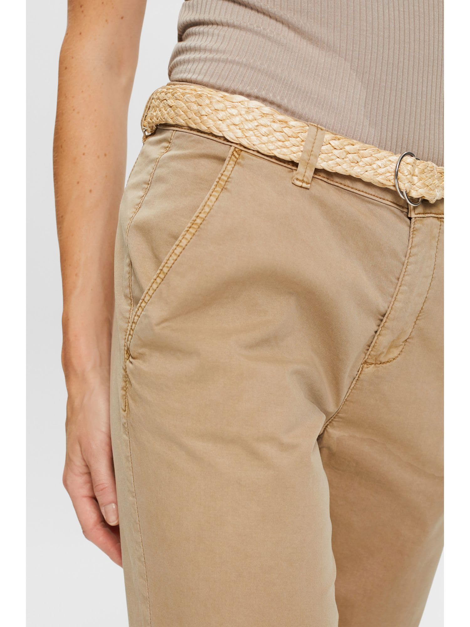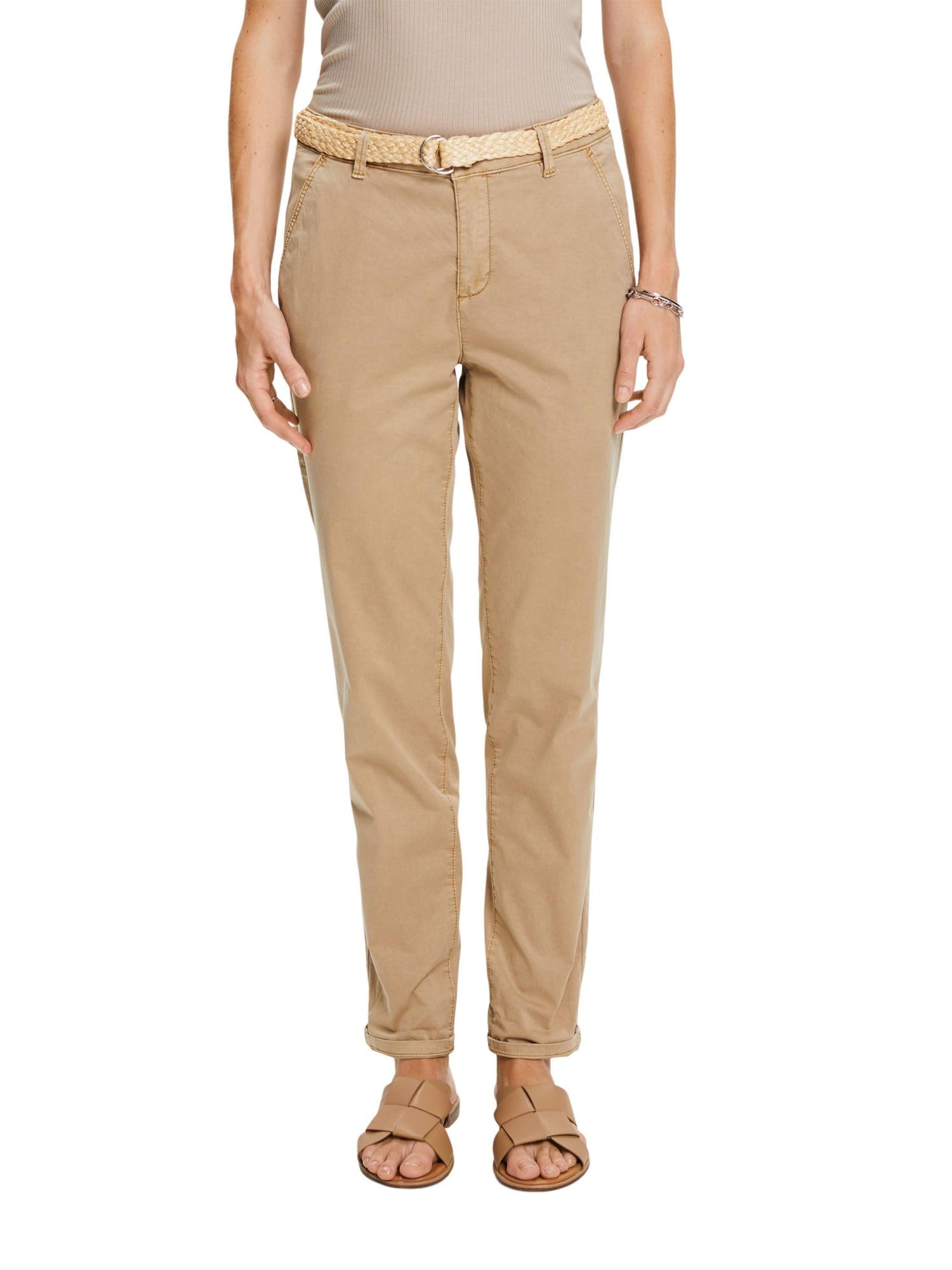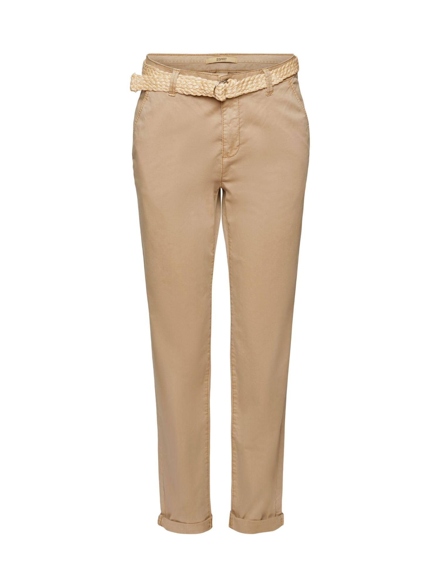 "This straight-cut chino made from an environmentally friendly, soft cotton blend comes with a braided belt. Sustainable cotton blend with stretch comfort. Straight leg. Waistband with belt loops, single button, and zipper."