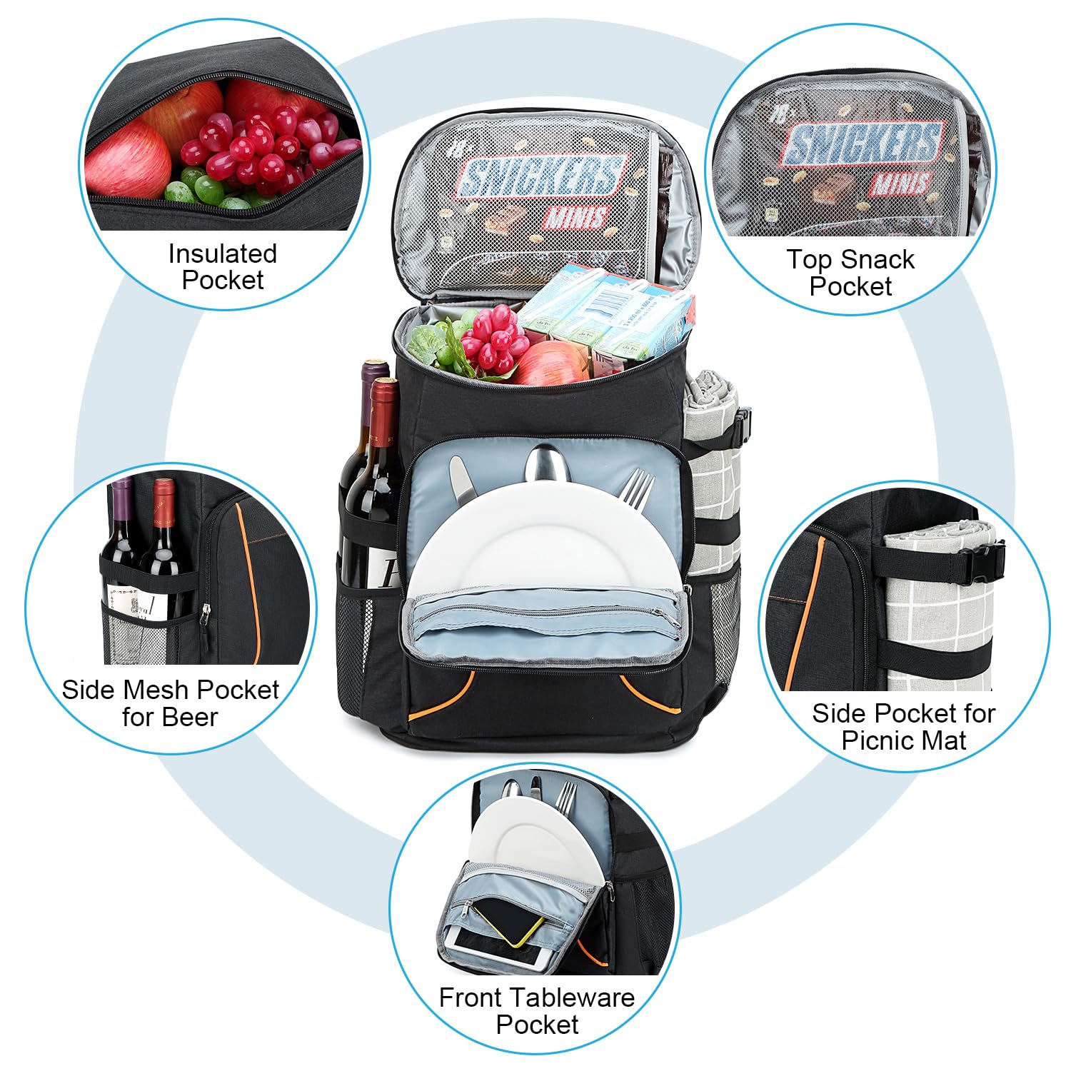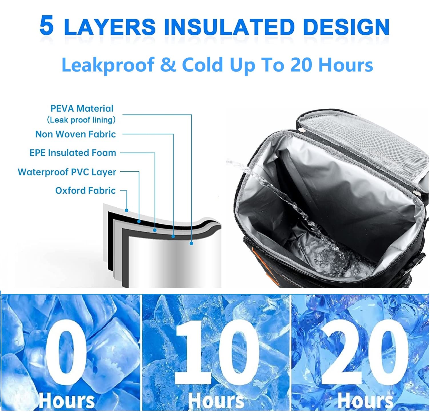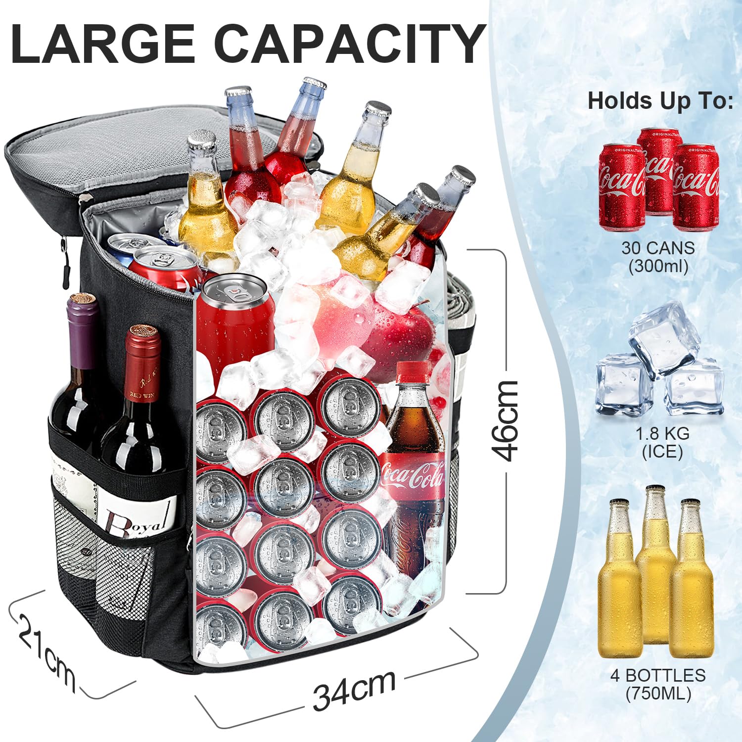 ["✿ Long-term cooling: Inside the cooler backpack is lined with a more durable PEVA lining, which extends the cooling time of food and drinks. When used with freezer packs, it can stay cool for 12-15 hours (duration depends on ambient temperature).","✿ Large capacity: Size: 34 * 21 * 46 cm, Capacity: 35 L, Weight 0.9 KG. The main cooling compartment is large enough for 30 cans (300 ml) or 20 cans (500 ml). Enough to cover your daily travel needs.","✿ Leak-proof function: The exterior of the backpack is made of tear-resistant and water-resistant high-quality 400D polyester fibers. The PEVA inner lining ensures that frozen items do not leak after thawing. Provide double protection for your cooler bag.","✿ Multiple compartments: 1* main cooling compartment for insulation to store beer or drinks, 1* top zipper pocket for fruit preservation, 1* front pocket for storing utensils/iPad, 2* side pockets for 2 bottles of beer and picnic blanket, shoulder strap equipped with a bottle opener and a mesh pocket for storing up to 5.5 inch mobile phones. Very easy and practical.","✿ Convenient to use: The breathable, padded area on the back of the cooler bag and the padding on the shoulder strap provide maximum comfort and portability. Whether you want to go to parks, beach trips, picnics, work, camping, or hiking, Estarer's ice bag is ideal for families and friends to enjoy outdoor activities."]