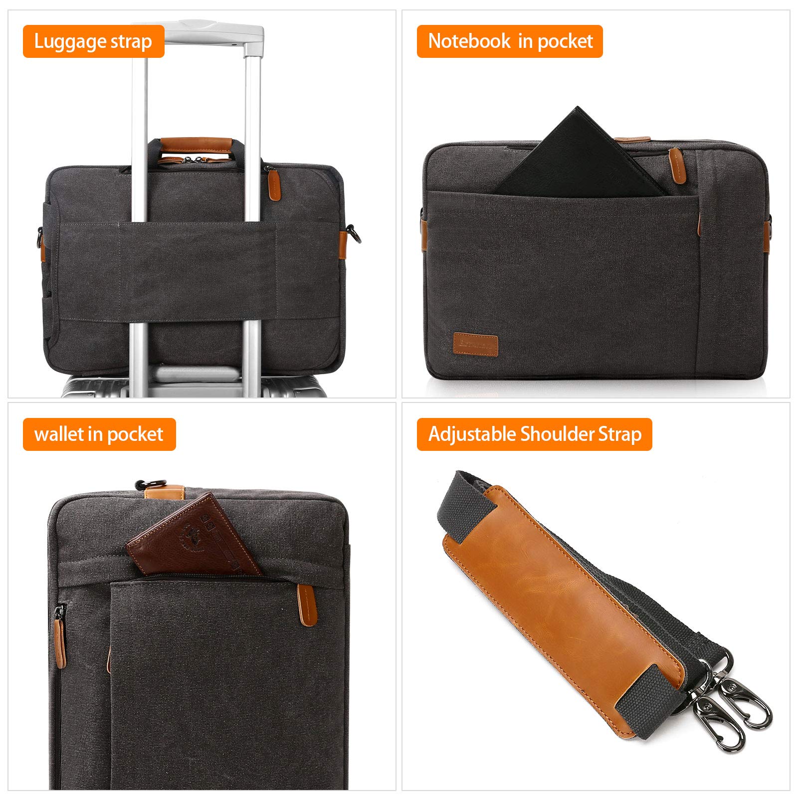 ["【3 IN 1 MULTIFUNCTION BAG】Convertible Backpack: You can use the bag as a briefcase with a handle, as a shoulder bag with a long, sturdy strap, or as a backpack turned 90 degrees. You can also slide it over an extended rolling suitcase handle.","【PERFECT CAPACITY】These different compartments are designed for specific purposes, allowing you to carry not only your laptop and cables but also many other items. They provide plenty of space for A4 folders, books, etc. You don't have to clean up the entire bag when searching for something.","【Laptop Protection Layer】Laptop compartment with flexible belt provides extra protection for your laptop. The bottom, sides, front, and back of the laptop compartment are padded with soft padding for your valuable electronic accessories, especially your laptop, effectively reducing wear and tear.","【High-Quality Materials】ESTARER uses higher quality materials and pays more attention to the durability of the backpack. This effectively reduces the tearing problem at the seams of the backpack. Don't worry about the zipper frequently falling off.","【Bag Dimensions】Extended Size: approx. 43 x 30 x 8 cm (W x H x D); Fits screen sizes up to 17.3 inches laptop or notebook. Please check the size before purchasing!"]