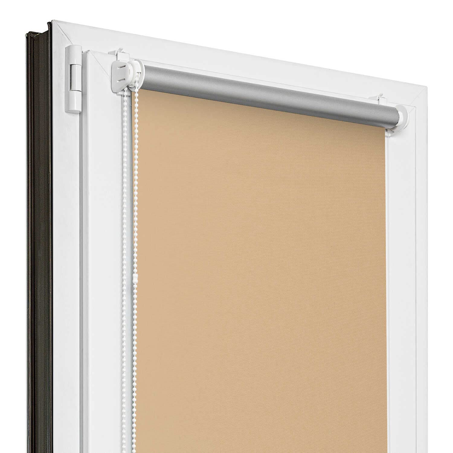 Estika blackout roller blind thermal roller blind without drilling - 145 cm x 120 cm - Beige - 13 fabric colors, roller blinds for windows without drilling, clamp fix roller blinds for windows inside (145 cm fabric width)