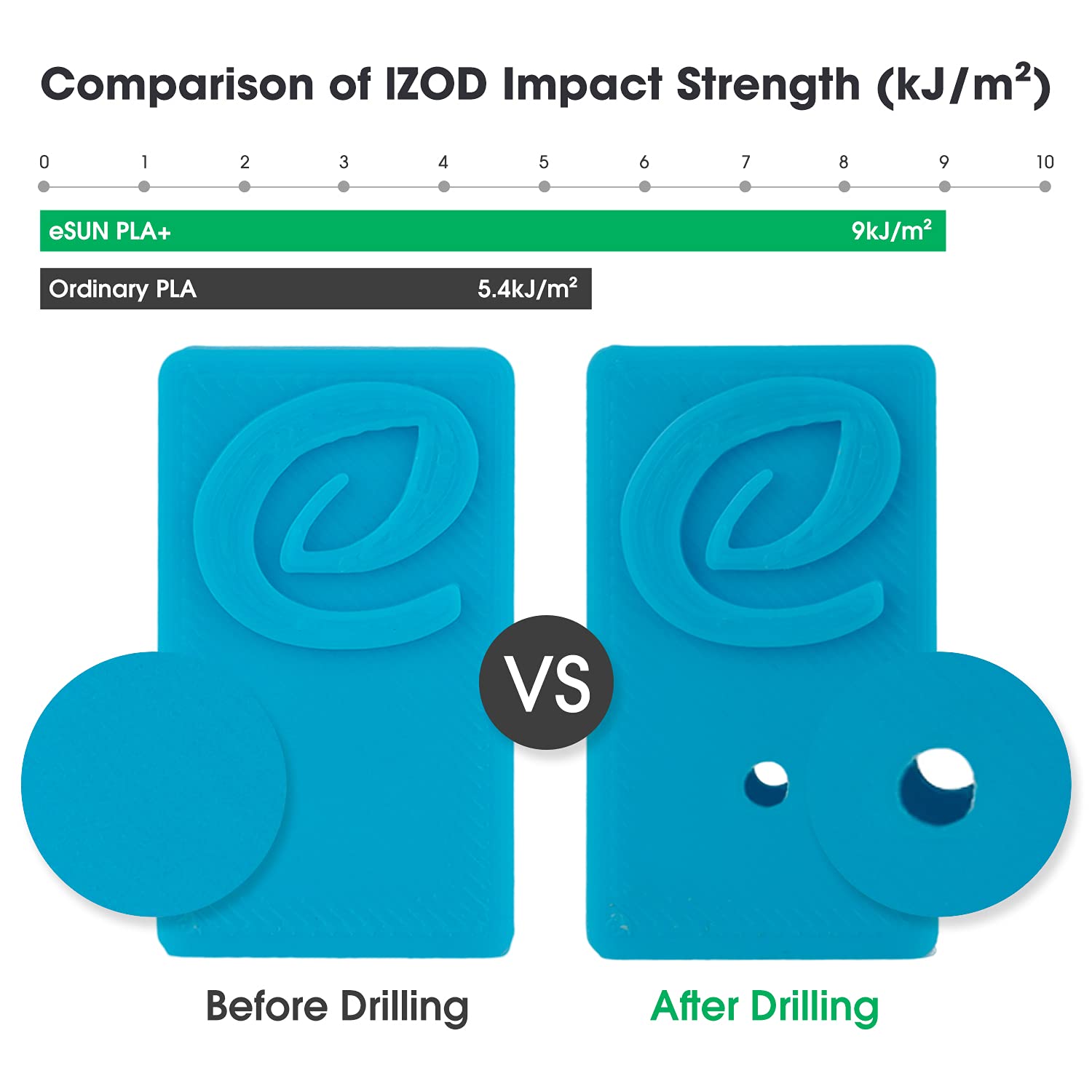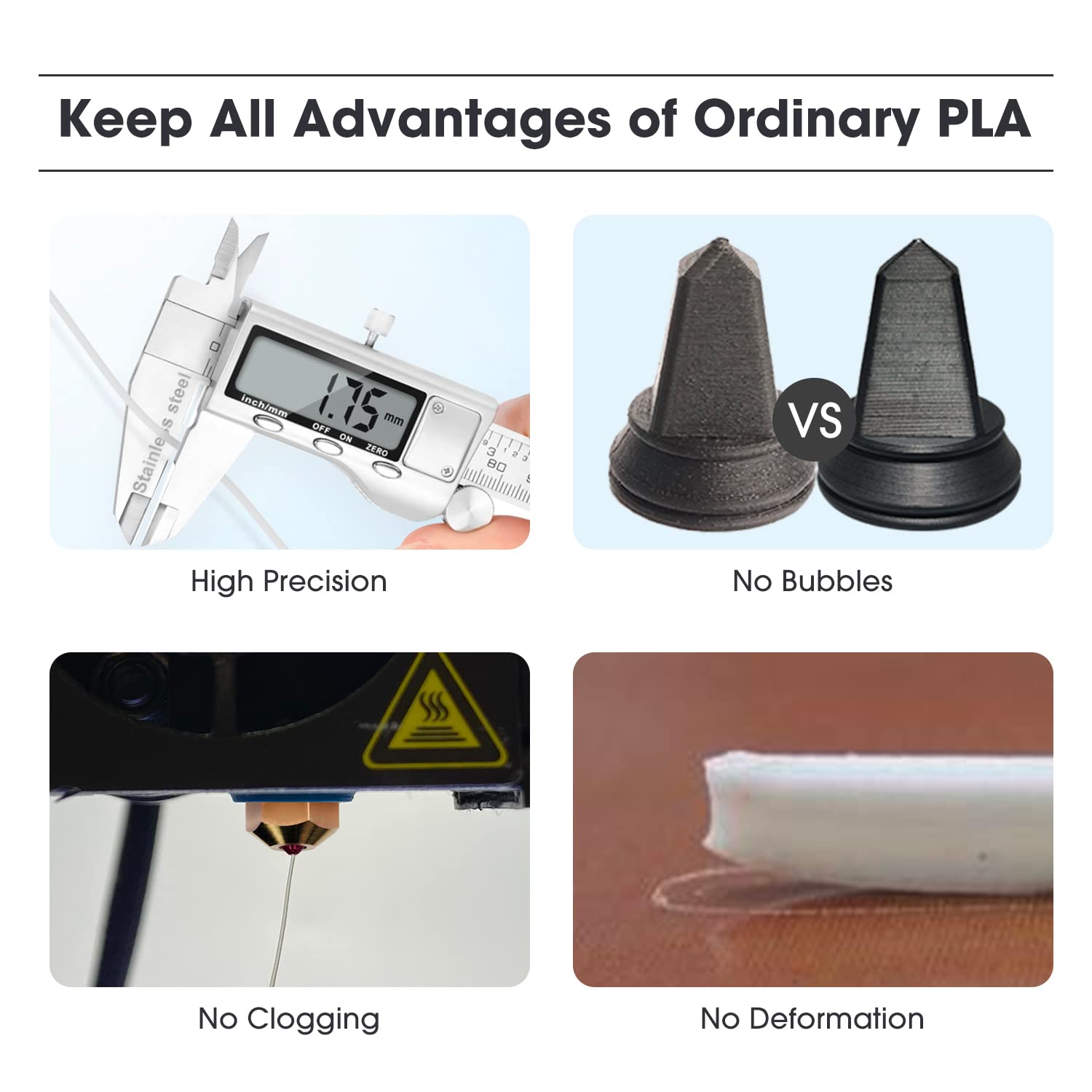 ["【High Compatibility】 Compatible with most FDM 3D printers, such as: Bamboo Lab Bamboo Lab X1 and X1C, AnkerMake M5, Creality Ender 7 and K1 K1 MAX, Voron 2.4, FLSUN V400, Prusa, UltiMaker, MK3, Ender 3, MakerBot, FlasHSorge, Raise3D. Good layer bonding performance meets your requirements for printing functional parts with higher toughness, PLA+ material properties support fast printing.","【Environmentally Friendly PLA+】 PLA+ is an improved version of ordinary PLA. It has higher strength and better toughness, and is not easy to break. Made from stronger raw materials from renewable plant resources, environmentally friendly and non-toxic, ideal for indoor printing.","【Dimensional Accuracy +/- 0.03mm】 eSUN PLA+ 3D printer filaments are manufactured with more precise specifications. Minimal tolerance and low warping to ensure uniform feed and stable prints, no bubbles, less stringing, extremely high success rate.","【Tangle-Free and No Clogging】Total length: 340-350m. Full 1kg 3D printer filament spool, perfect roundness and very tight diameter tolerance, good winding, does not overlap or tangle. Melts well, feeds evenly and consistently without clogging the nozzle or extruder.","【Good Printability】 PLA+ retains all the advantages of PLA, easy to print like ordinary PLA, low shrinkage, no deformation, no cracks, high printing precision. Widely used in machinery, electronic devices, cars, decorations, COSPLAY, and other items."]
