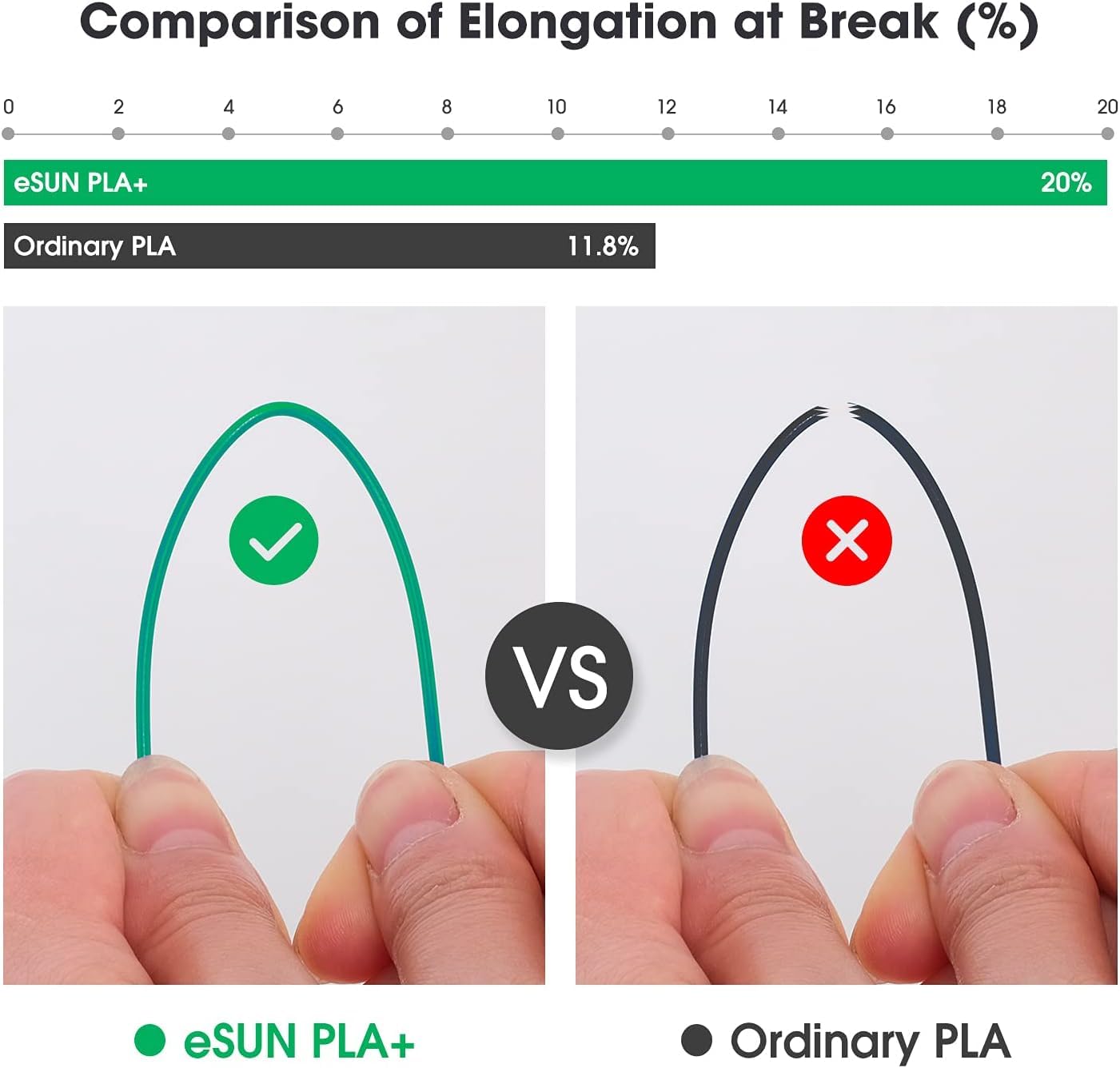 ["【Environmentally friendly PLA Plus】PLA+ is an improved version of regular PLA, ensuring higher strength and better toughness that is not easy to break. And it is made with strong raw materials from renewable plant resources, biodegradable and environmentally friendly, non-toxic and odorless.",