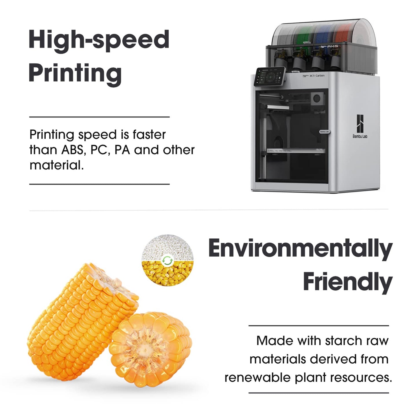 "【Good Printability】Support structure is easy to remove, smooth and flat printed surface; High toughness, not easy to break; Retains all the benefits of PLA, easy to print, low shrinkage, high printing precision; Printing speed is faster than ABS, PC, PA, and other materials."]