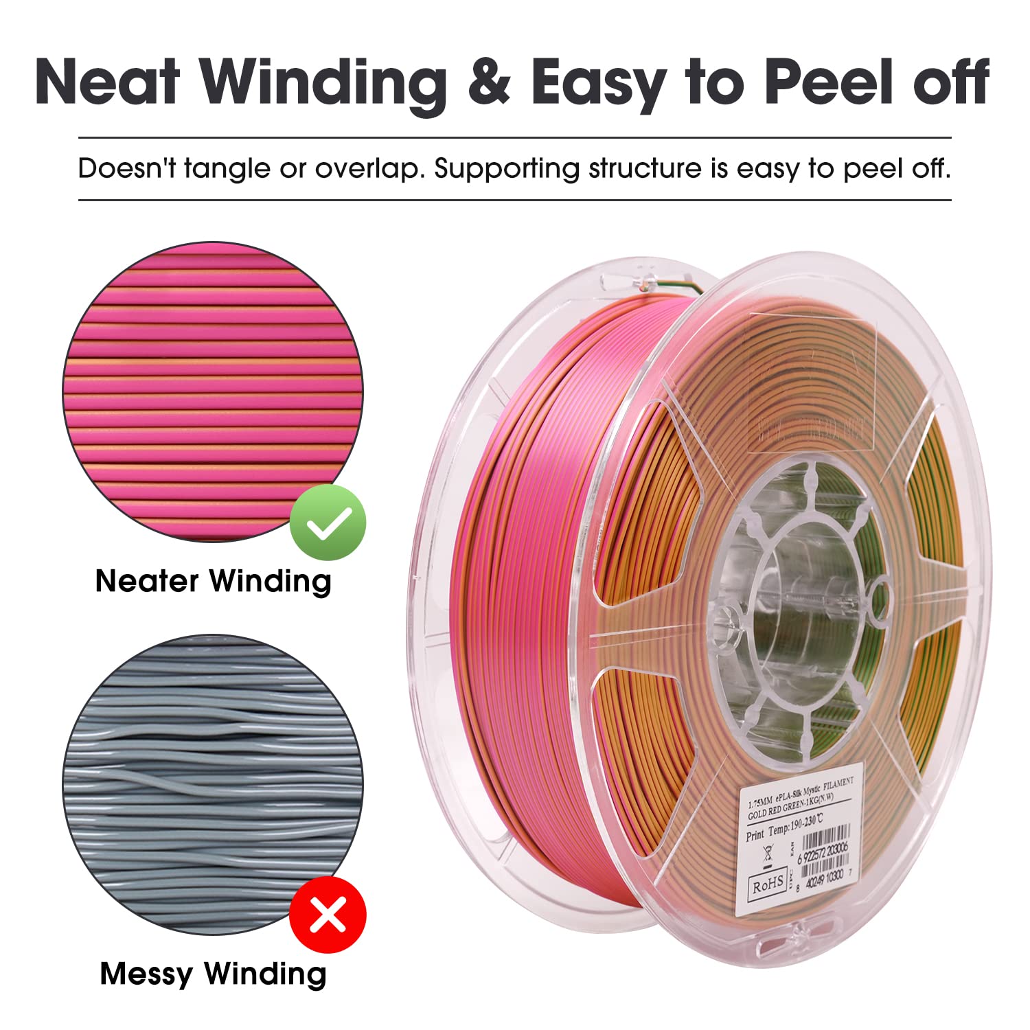 eSUN Silk Tri-Color PLA Filament 1.75mm, Shiny Silk Mystic PLA 3D Printer Filament, 1KG Spool Co-Extrusion 3D Printer Filament for 3D Printers, Silk Gold Red and Green