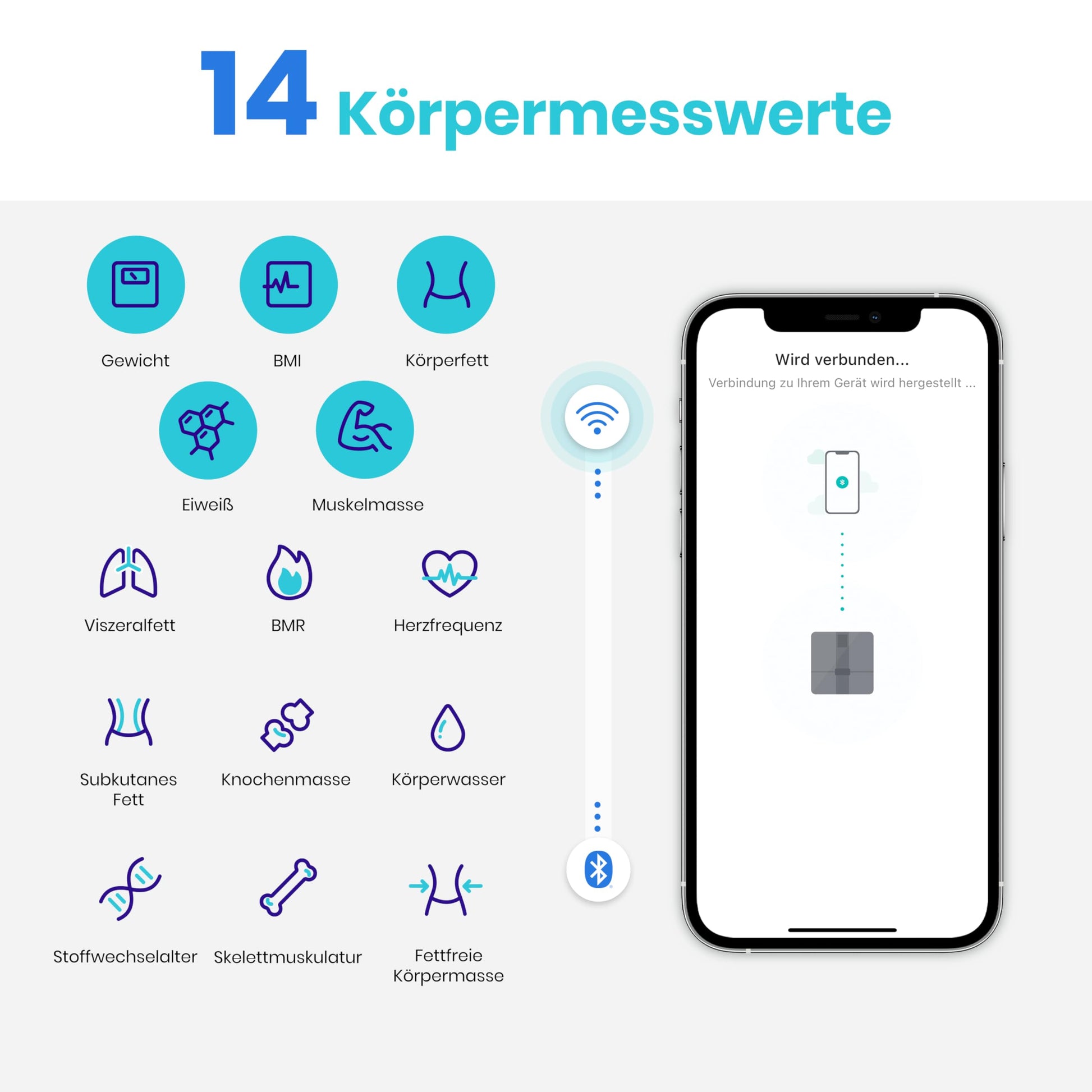 Fun display: Our display shows progress in an interactive and amusing way. Without using your phone, you get fun facts directly on the scale. The data is automatically synchronized via Wi-Fi with the VeSync app.