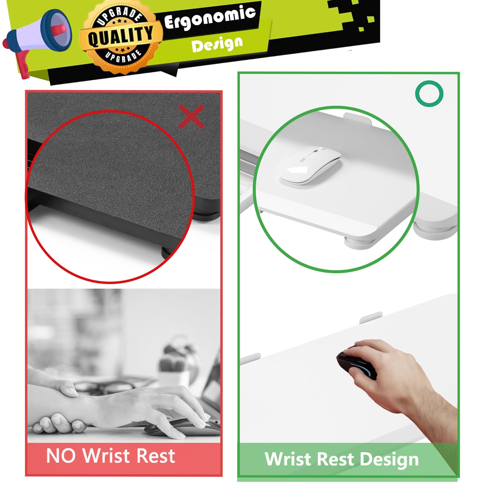Ergonomic benefits: Our keyboard tray under the desk raises keyboards by 4.3 inches to reduce neck strain; the sliding system moves forward to maintain a neutral wrist position and backward to store peripherals, avoiding injuries from poor posture"