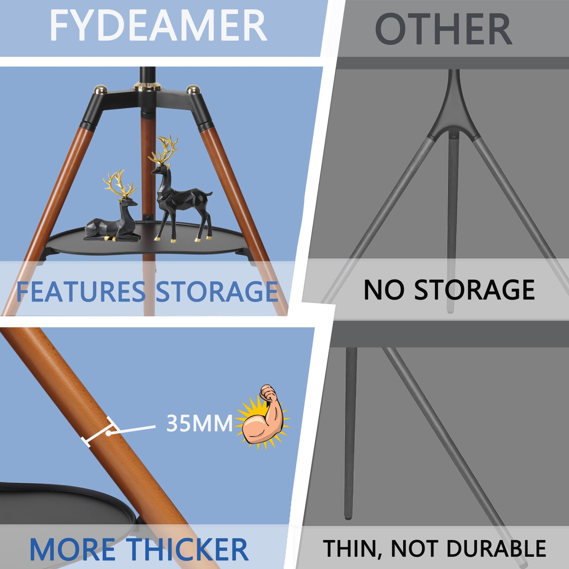 ETHU Tripod TV Stand Wooden TV Easel for 32-65 inch TVs, Height Adjustable TV Floor Stand with Media Shelf for LED/LCD Screens, TV Stand with 140° Swivel Function VESA 600x400mm