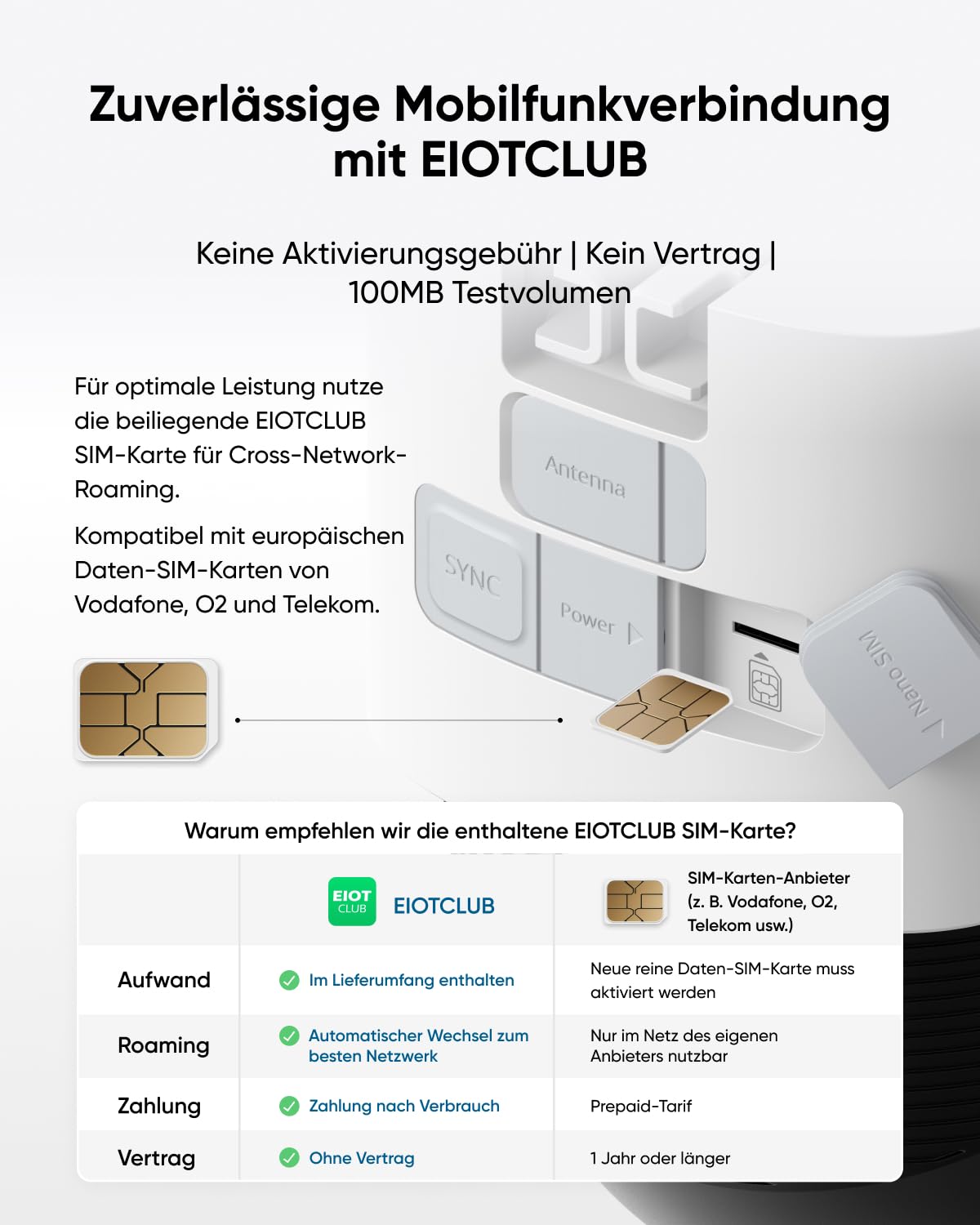 ["ENDLESS POWER: Enjoy true independence even off the grid with the improved solar panel and powerful 9400mAh battery.","4G & WiFi: Equipped with 4G mobile data and WiFi for reliable connection and maximum versatility.","Always connected to the strongest network thanks to EIOTCLUB: The eufy 4G LTE Cam S330 comes with an EIOTCLUB SIM card that is compatible with multiple European networks like Vodafone and O2. For optimal performance, we recommend using the included EIOTCLUB SIM, which automatically selects the strongest available network through cross-network roaming. If you prefer to use your own SIM card from Vodafone, O2, Telekom or other European providers, make sure to choose a pure data plan.","4K COLOR VISION DAY & NIGHT: The high-resolution 4K camera captures license plates in detail from up to 10m away. The 100-Lumen spotlight makes vibrant colors and details visible up to 8m away - even in the dark.","360° PANORAMIC VIEW WITH AI TRACKING: Comprehensive field of view with pan and tilt function. AI recognizes and tracks people and vehicles across a wide range of motion."]