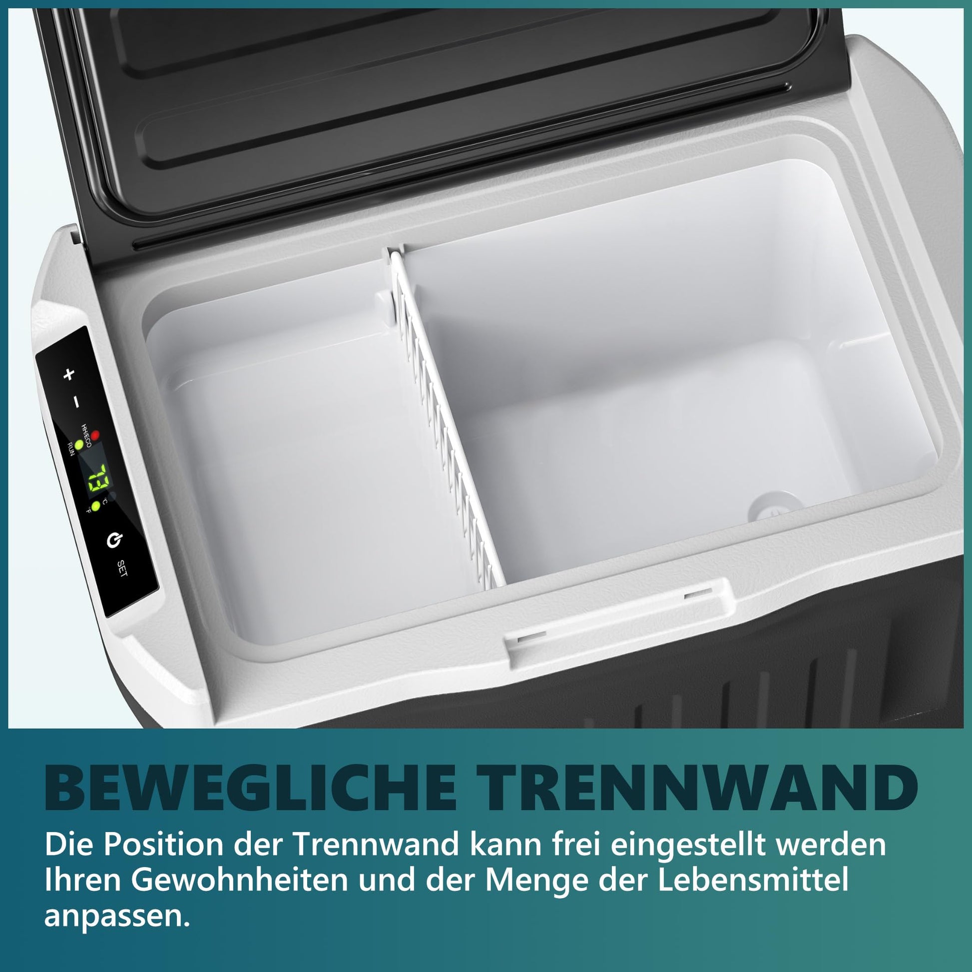 ["Fast cooling and low energy consumption The 12V compressor cooler uses an advanced variable frequency compressor that reaches cooling from 20°C to 0°C in just 15 minutes The cooler compressor offers an energy-efficient ECO mode and a fast cooling MAX mode with a power consumption of only 45W certified by UL for energy efficiency , APP control The car refrigerator can be connected via Bluetooth so that users can monitor the temperature, humidity, and other conditions in real time with their smartphones to ensure that the food is stored under optimal conditions Removable shelves and insulated outer shell The 12V refrigerator includes removable shelves for convenient storage and retrieval of all foods, enhancing your travel experience The portable cooler features a thick 45mm foam layer and durable composite insulation material that provides excellent thermal performance for worry-free travel Portable and user-friendly design The compact 12V camping refrigerator has a large volume of 21L and can serve as both a refrigerator and a freezer The hidden handle design makes the portable refrigerator easy to transport, and the built-in LED light ensures items are easily accessible at night The 12V refrigerator operates at only 42 decibels, providing a quiet and comfortable environment Battery protection and 3 charging options The camping refrigerator offers 3 levels of battery protection so you can adjust the input power between L/M/H modes to avoid overloading or discharging the vehicle battery The car refrigerator can be powered in 3 ways: through an indoor AC adapter, 12/24V car charging, and charging via a power station Included The EUHOMY car refrigerator comes with a 220/240V AC adapter, a 12/24V DC adapter, and two removable shelves suitable for various home or car use scenarios This portable refrigerator offers 1 year of technical support Choose EUHOMY, choose quality assurance"]