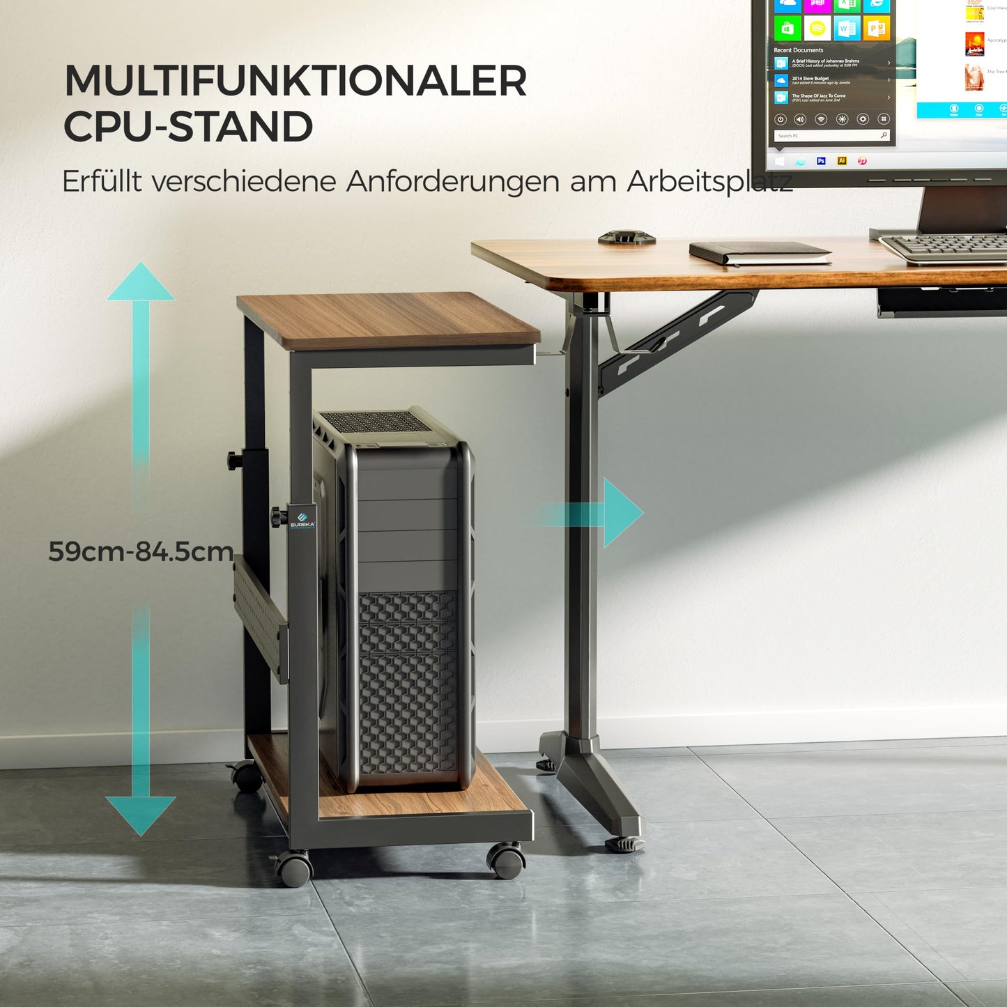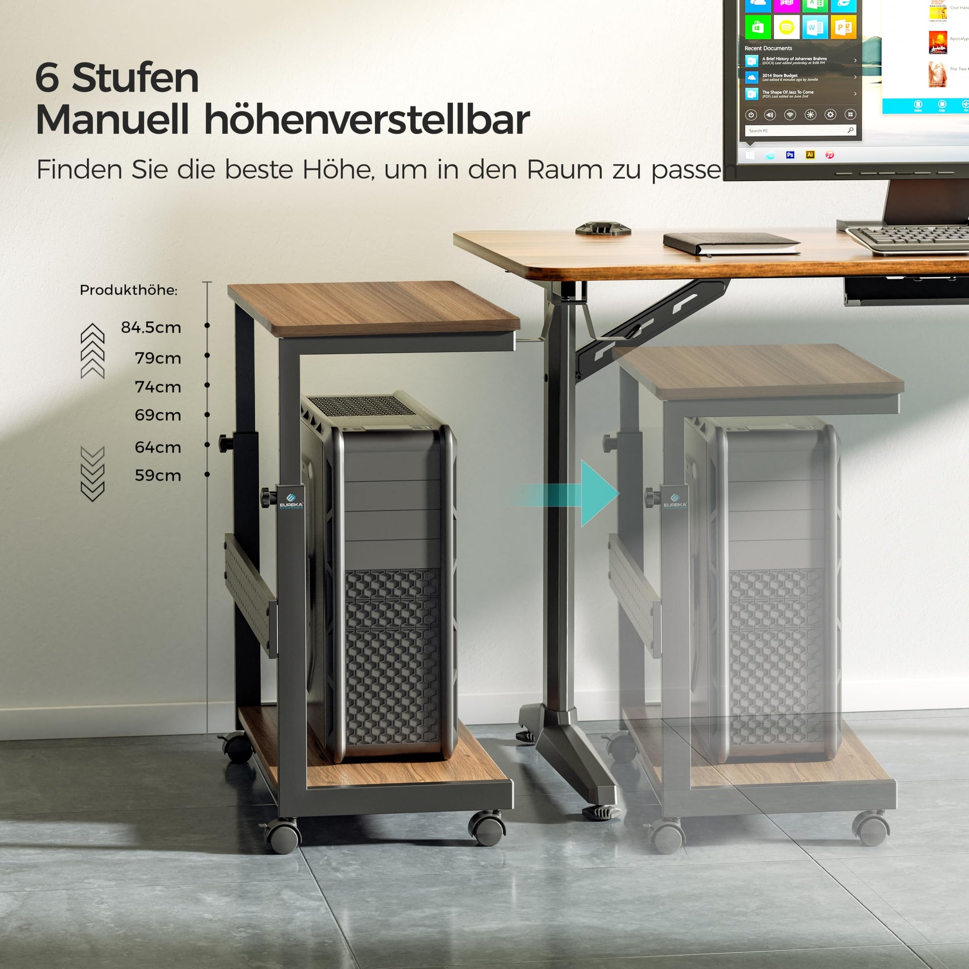 EUREKA ERGONOMIC Adjustable PC Tower Stand, ATX Case CPU Holder PC Cart, CPU Stand with Wheels and Mouse Pad, Walnut Color.