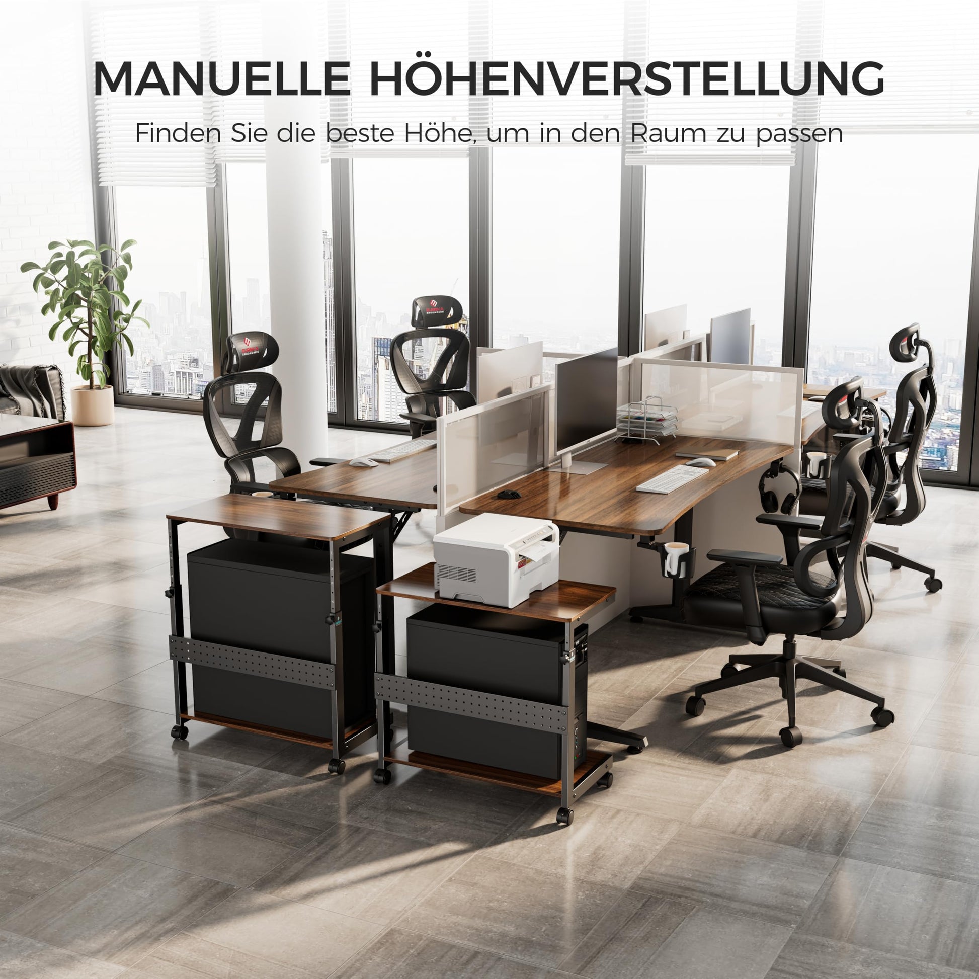 ["Height Adjustable Computer Tower Stand"] Unique manual height adjustment from 22.4 inches to 28.7 inches allows you to store your tower under the desk or next to the table, supports most cases on the market, including Full Tower ATX case. Adjust the height to increase the distance between the computer tower and the top layer to accelerate heat dissipation. ["Multi-functional Design"] Efficient 2-tier design. The bottom layer stores the PC tower, while the top layer holds printer, plants, documents, and magazines. Pegboard on the back organizes office supplies like power strips, etc. Mouse pad included, this CPU stand can be used for mouse operation with comfortable armrest. ["Mobility and Stability"] Four 360-degree swivel casters (without brakes) allow for smooth movement across carpet. The mobile design enables easier use at home and in the office, even when fully loaded, reducing carpet imprints and indentations and making the floor easy to clean. Double casters with brakes keep the stand securely in place for stable performance. ["Sturdy Structure"] EPA TSCA Title VI.CARB Phase ② Certified desktop panel with premium anti-scratch finish. Thicker steel frame with powder-coated surface resists corrosion to ensure stability and durability, not easily scratched or deformed, no wobbling. ["Excellent Customer Service Team"] If you have any questions, feel free to contact our customer service. | Easy installation--friendly to beginners.