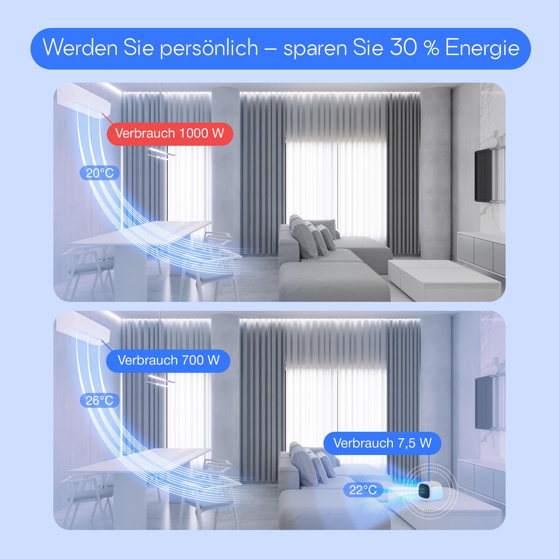 "Energy Efficient and Cost-Saving: Consumes only 10W (up to 100 times less than an air conditioner) and saves your bills. Can be used alone or in combination with an air conditioner to reduce energy consumption and prevent air dryness."